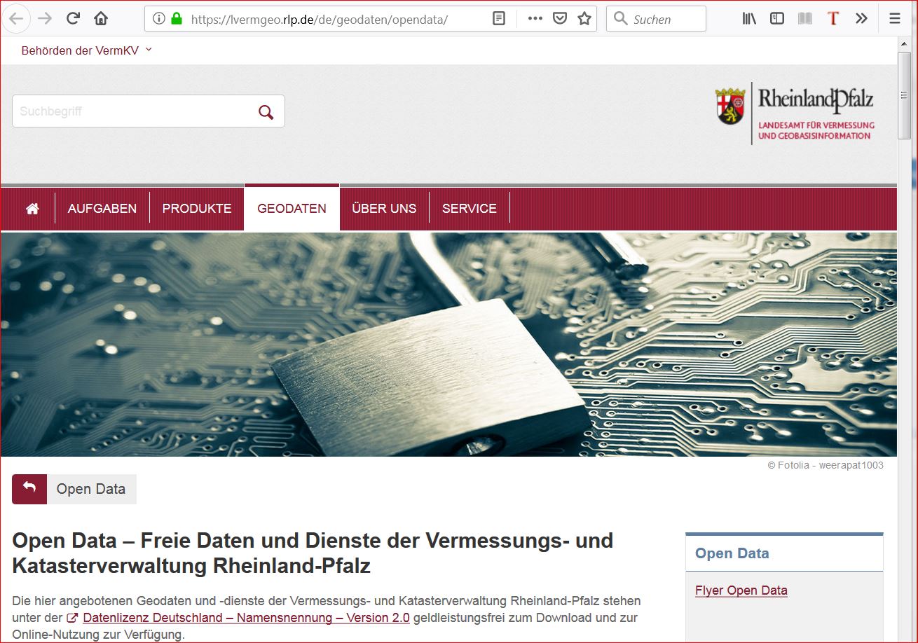 a) Am besten auf den von Günter angegebenen Link clicken : LVermGeo | Open Data | Willkommen in Rheinland-Pfalz - Wir bekommen die Seite mit den Geodaten Rheinland-Pfalz: