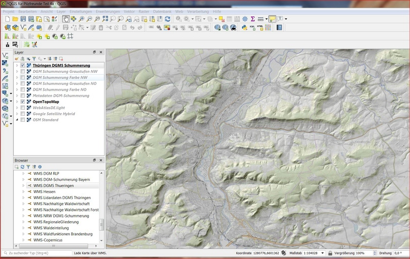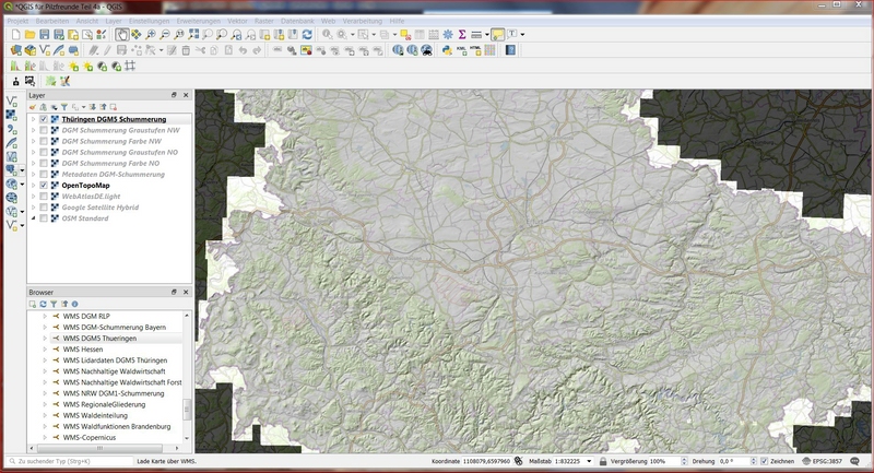 Inzwischen stellen einige der deutschen Bundesländer DGM-Daten kostenfrei zur Verfügung, so dass wir diese Karten in QGIS einpflegen können