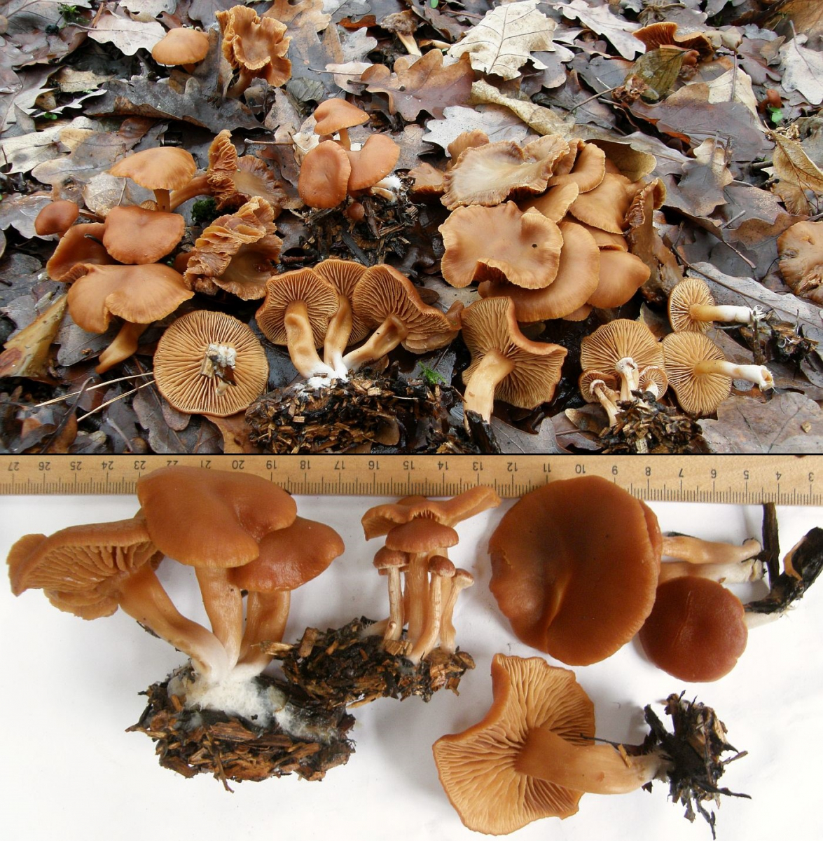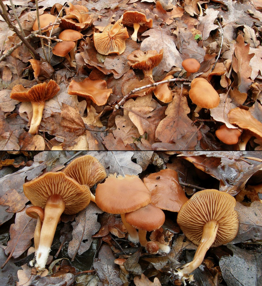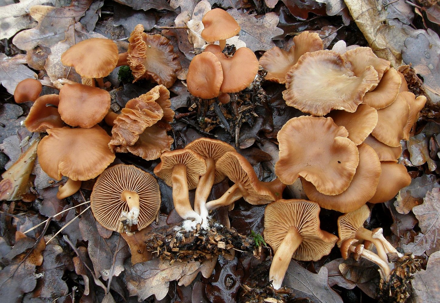 In einem Stadtrandgestrüpp bei Mannheim ist mir vor einigen Tagen eine Gruppe Trompetenschnitzlinge in die Hände gefallen, die einigermaßen aus dem Rahmen fallen.