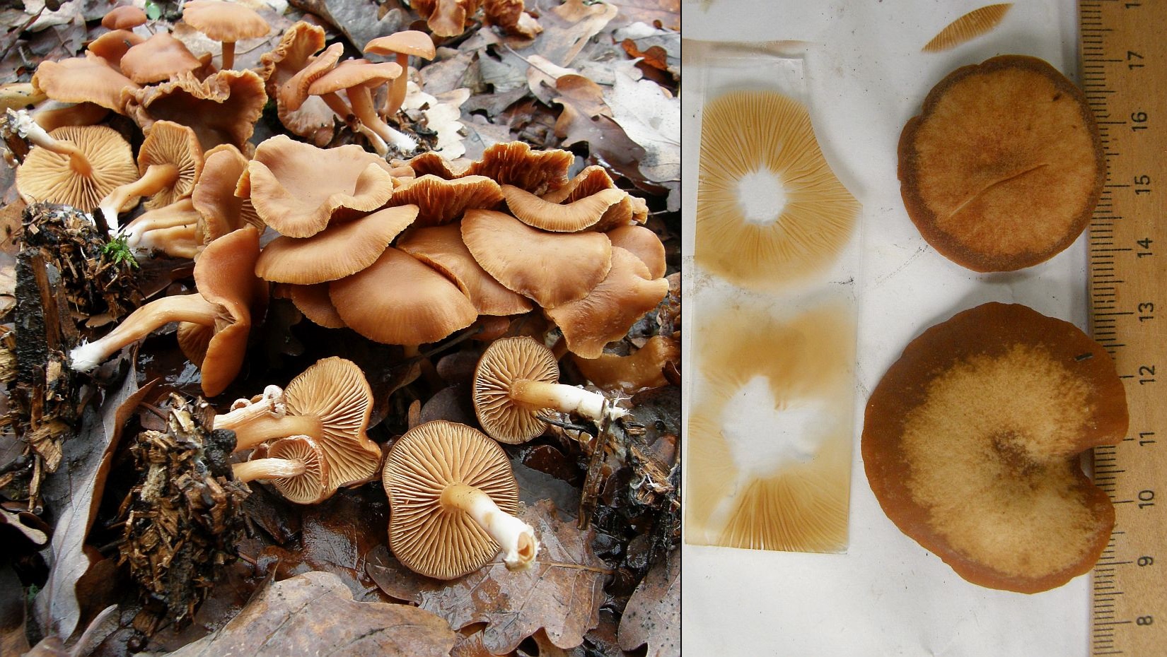 Blieben die irgendwie diffusen und morphologisch nicht sinnvoll trennbaren Taxa wie Tubaria hiemalis und Tubaria romagnesiana, aber auch da wollen die Ecken und Kanten nicht rund werden und in irgendein Konzept passen. Und Tubaria furfuracea s.str.: Sollte halt etwas größere Sporen und nicht solche massiven Klopper von Fruchtkörpern haben, oder?