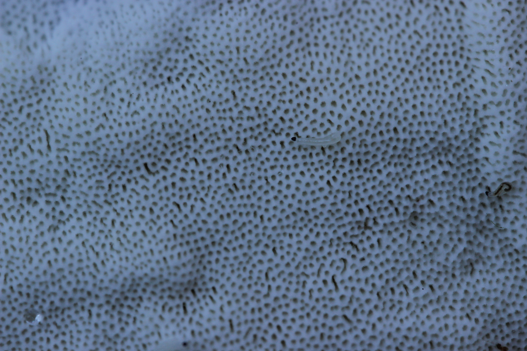 2. Ein Porling an Kiefer. Der muß heute Abend noch mal genauer mikroskopiert werden. Als ich da gestern ein kleines Stück in Kongorot SDS geworfen habe, hat sich der Pilz komischerweise gar nicht verfärbt und stattdessen schwamm er in einer violetten Suppe...