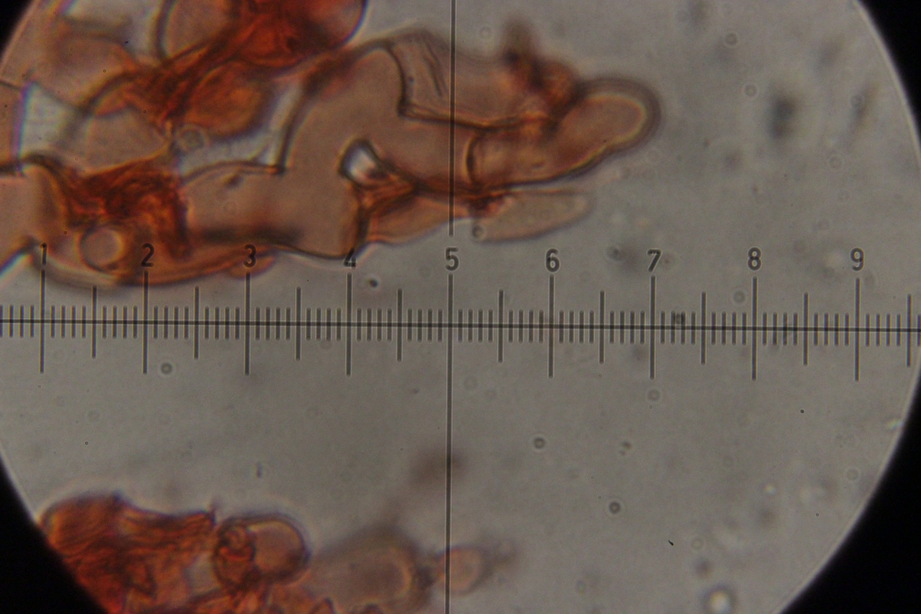 Melzer hilft auch noch: Die Skeletthyhen von Cinereomyces lindbladii lösen sich nicht nur in KOH auf, sondern sind zudem noch recht stark amyloid. Wie bei Antrodia xantha. Wenn man die beiden durch Habitus und Haptik schon trennen kann, (zumindest Habitus passt hier nicht zu A. xantha), kann man das schon makroskopisch testen und so viele Funde von C. lindbladii (extrem häufige Art) schon einordnen ohne zu mikroskopieren.