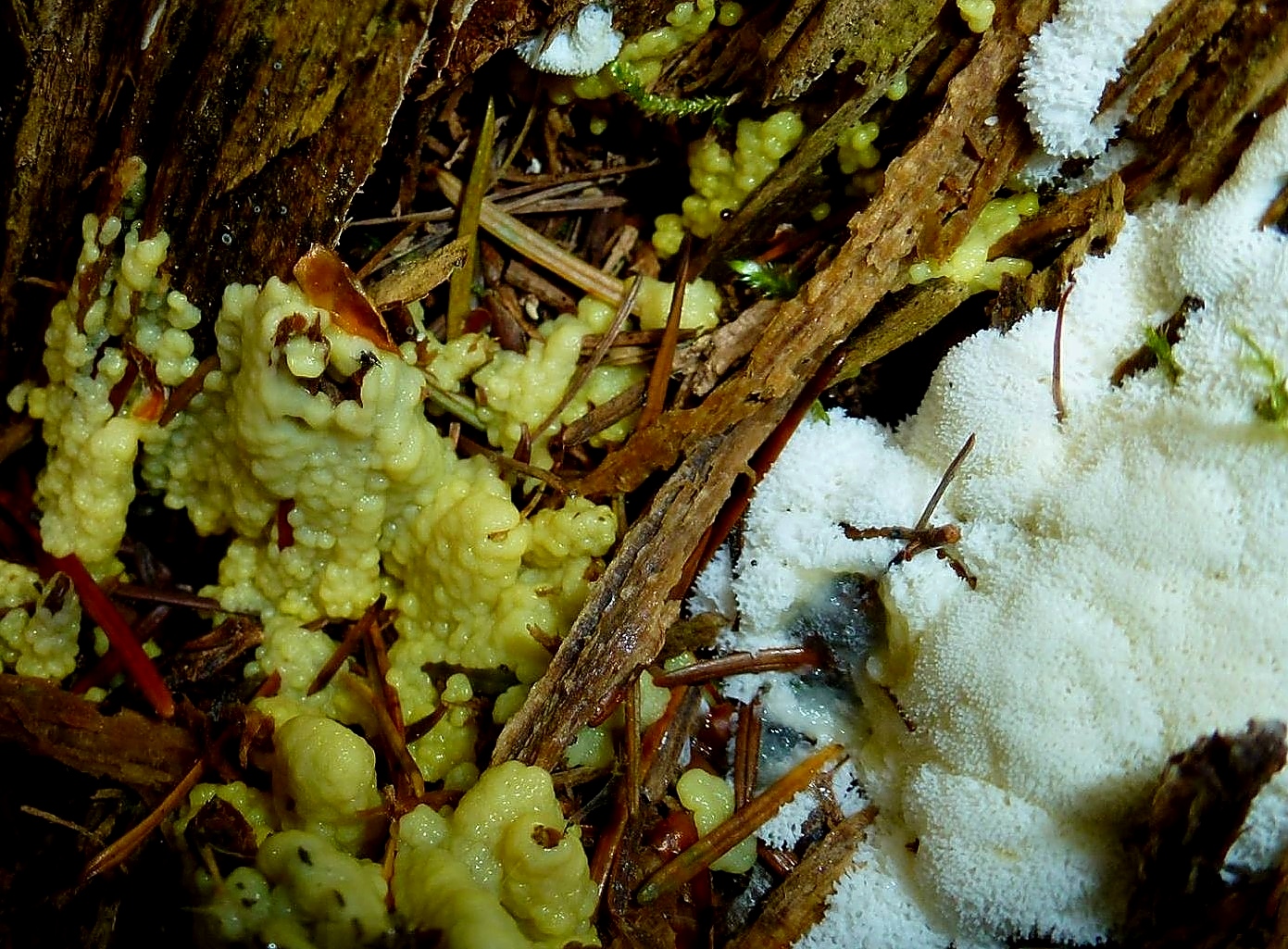 Ceratiomyxa fruticulosa passt nicht so gut , meine das um Variation poroides gehet aber bin nicht so siecher . Habe ähnliche Fund gefunden und Ula hat als C. fruticulosa var poroides bestimmen .