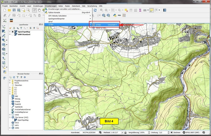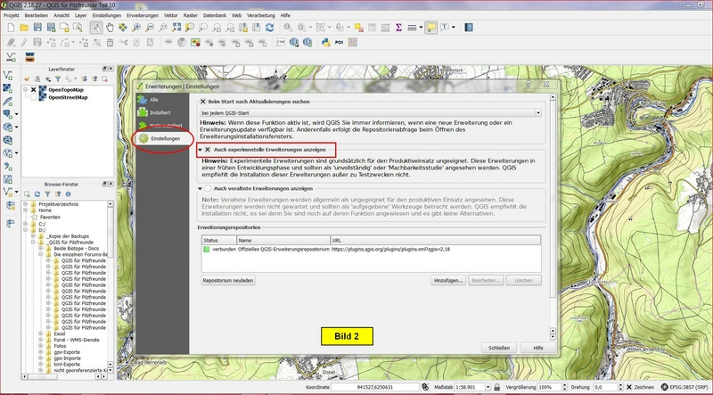 QTiles ist ein sogen. experimentelles Plugin. Um es zu installieren, muss man experimentelle Plugins erst einmal freigeben. Die folgenden Bilder zeigen das Vorgehen: