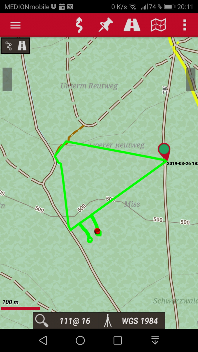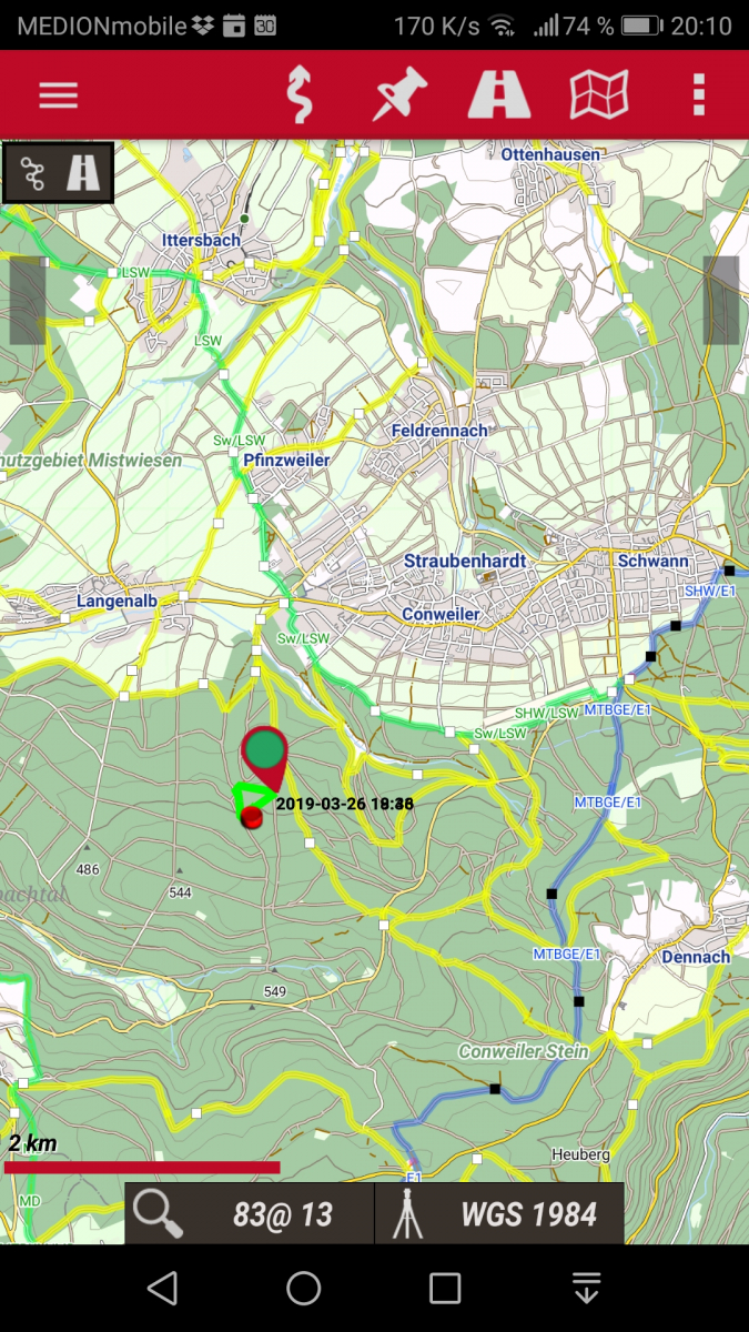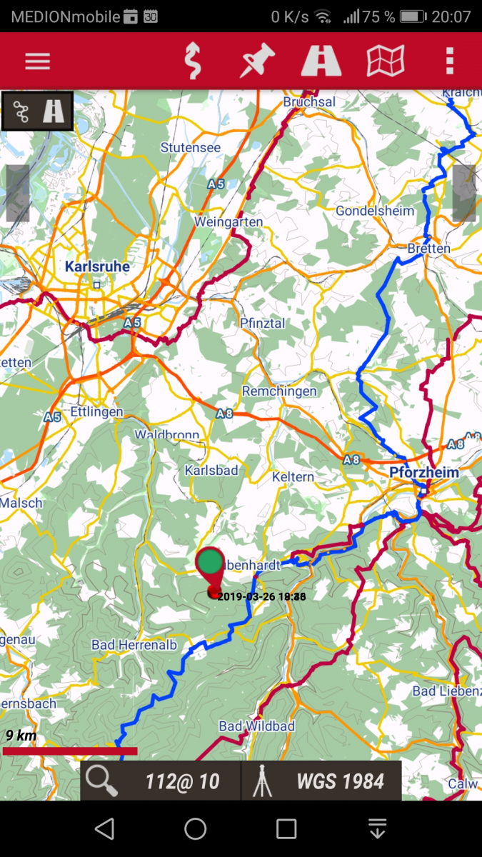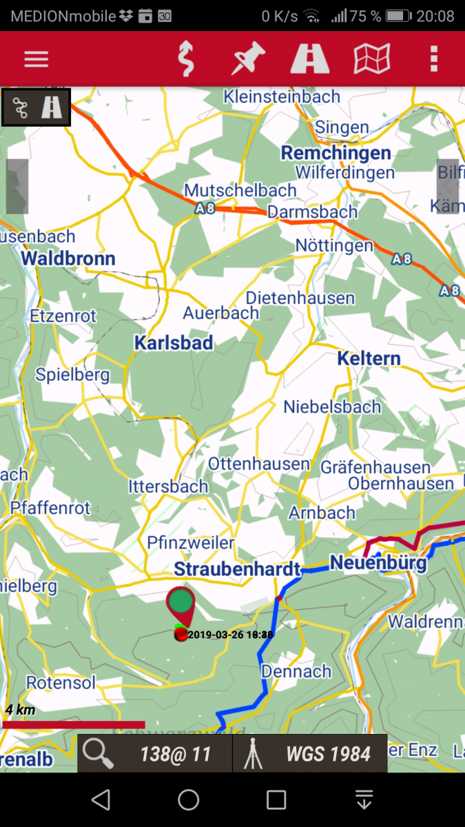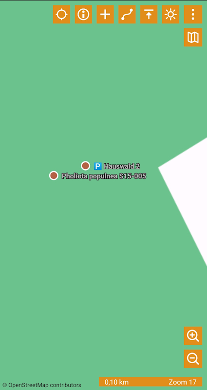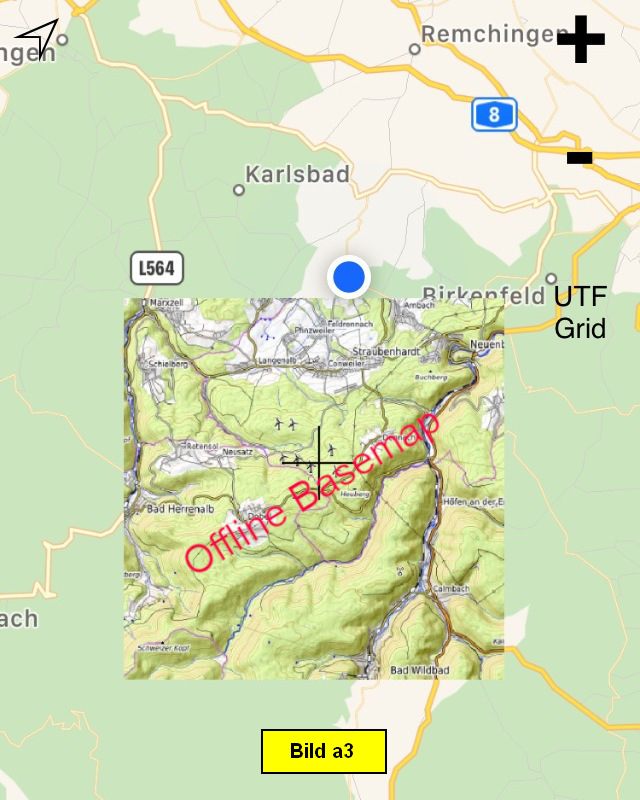 Ist man online, wird die Offline-Basiskarte sogar korrekt in die Online-Webkarte eingepasst/eingebettet !