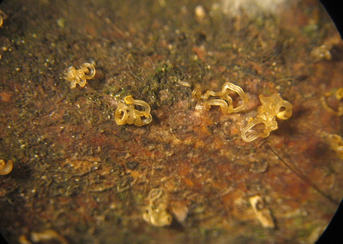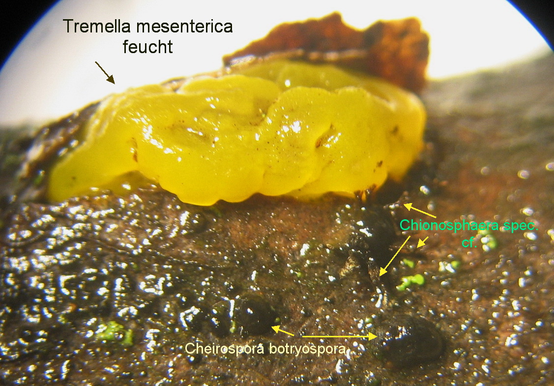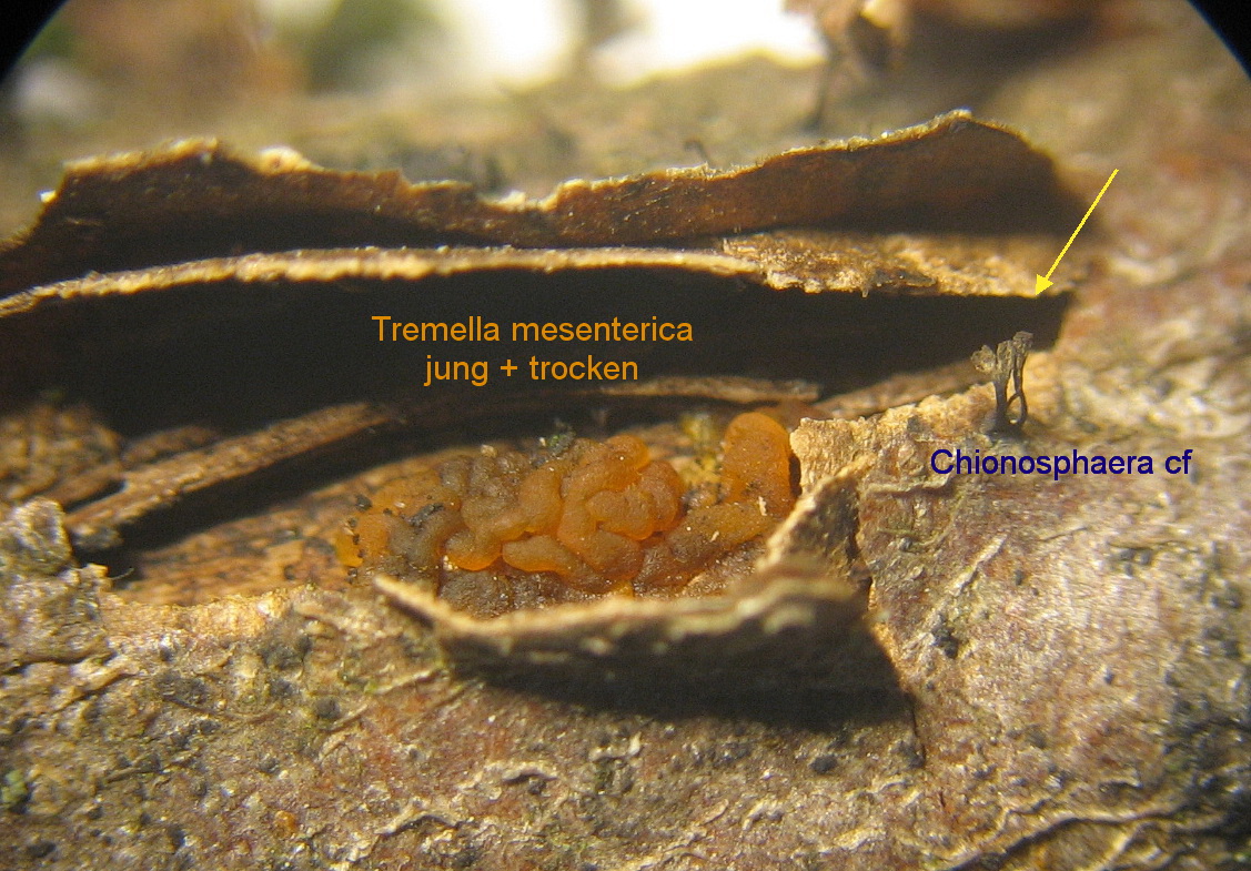 Tremella mesenterica ( Nebenan sieht man wieder diese Chionosphaera cf spec.)
