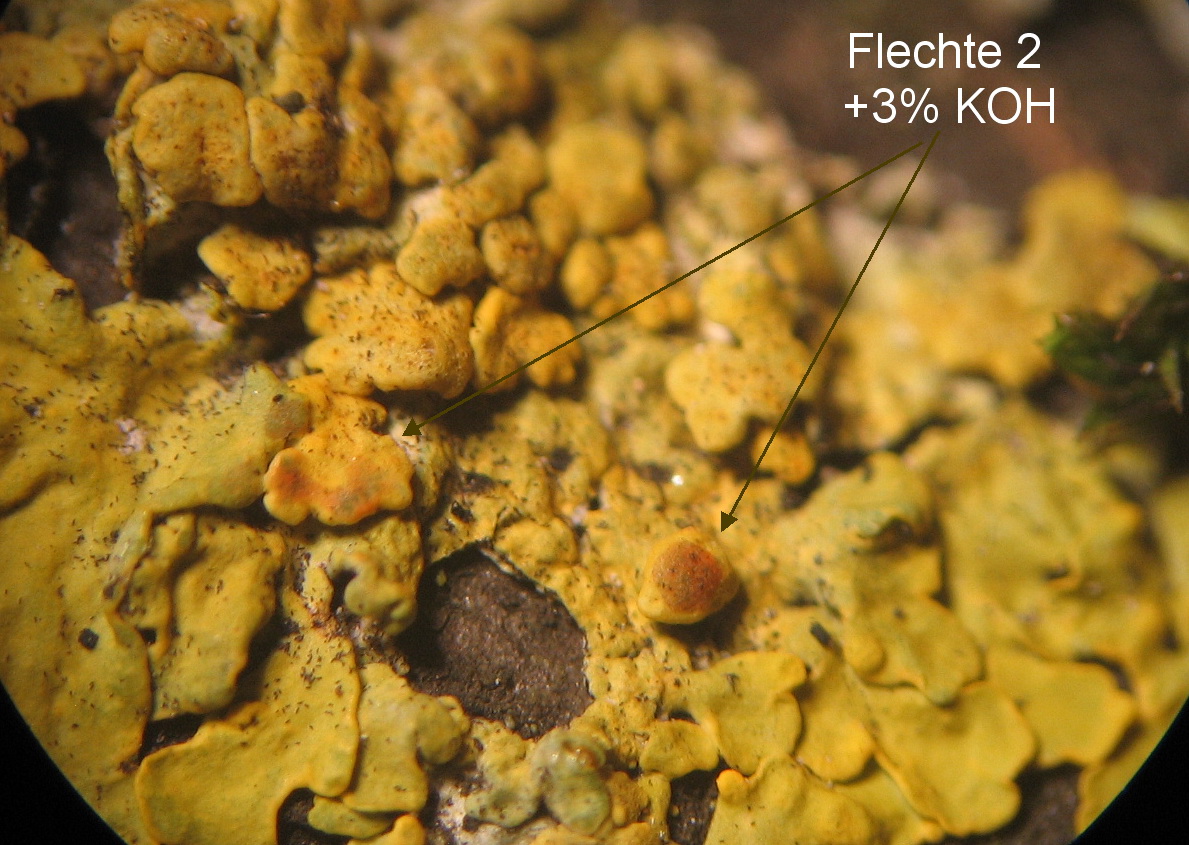 mit 3% KOH leicht orangerot