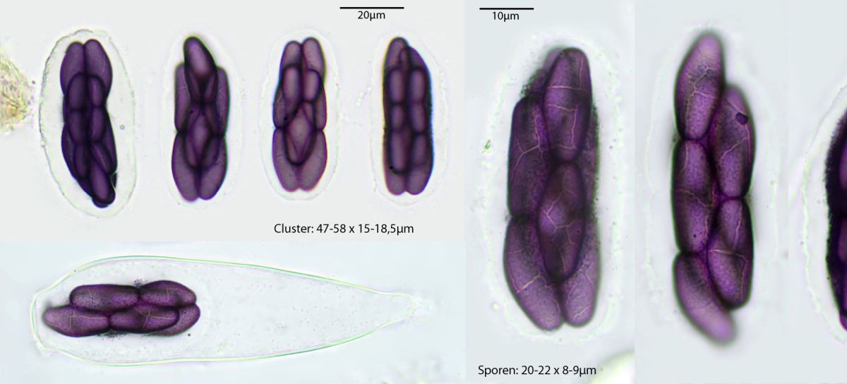 Mit Lugol gibt es bei Saccobolus immer eine farbenprächtige Vorstellung: