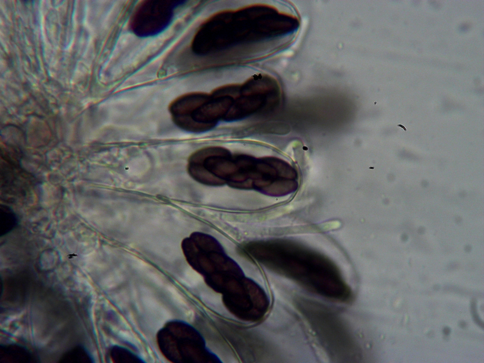 Asci mit 8-sporigem "Paket". lange dünne Paraphysen mit Septum kurz vor dem oberen Ende.