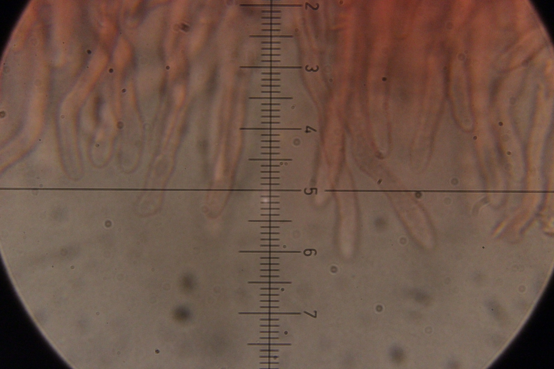 7. Auf dem gleichen Stück Eiche gab es auch das hier. Mit den Schnallen, 6-sporigen Basidien und einer Sporengröße von (4.7+-0.4) µm x (2.1+-0.1) µm würde ich wieder mal zu Sistotrema brinkmannii tendieren.