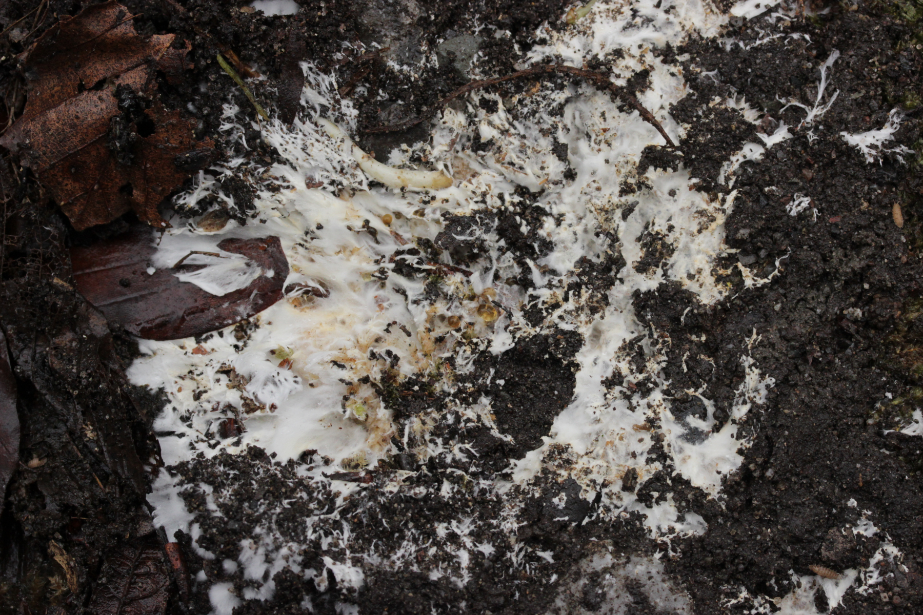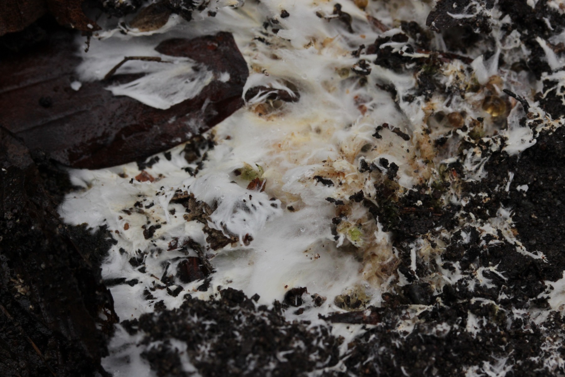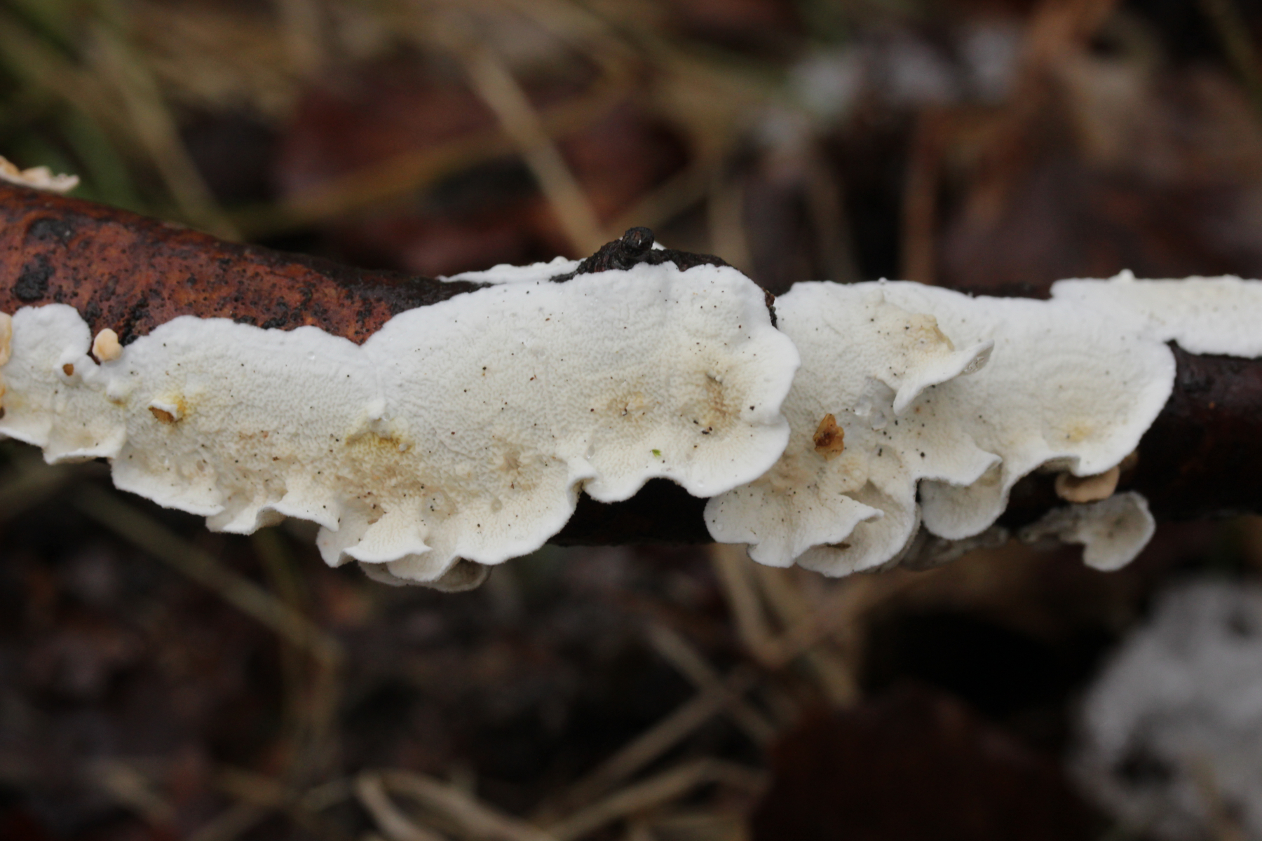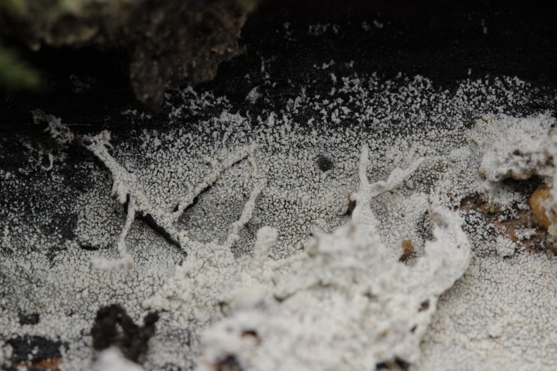 6. Auf der Unterseite eines dicken Stücks Eiche. Außer Hyphen gab es hier im Mikroskop leider nichts zu sehen. Ist das also einfach nur ein Mycel, was später mal ein richtiger Pilz werden will?