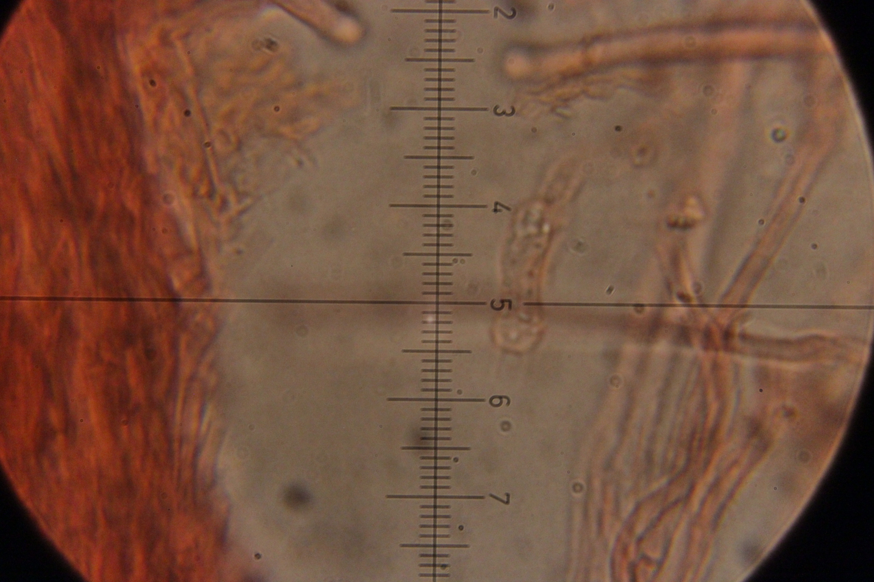 Das Hyphensystem ist jedenfalls Monomytisch keine Zystiden zu sehen, die Röhren Wände sind mit Basidien und Basidiolen überseht, leider war das Hymenium recht schwierig auseinander zu nehmen um einzelne Basidien zu Fotografieren.