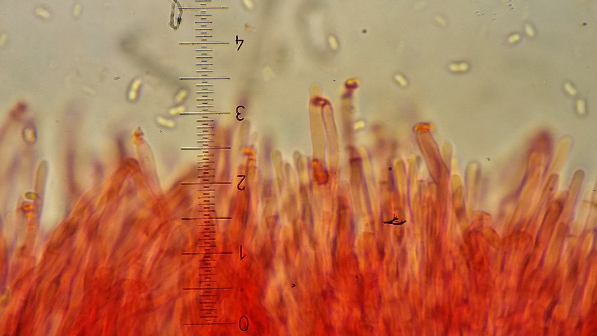 Das Hyphensystem ist jedenfalls Monomytisch keine Zystiden zu sehen, die Röhren Wände sind mit Basidien und Basidiolen überseht, leider war das Hymenium recht schwierig auseinander zu nehmen um einzelne Basidien zu Fotografieren.