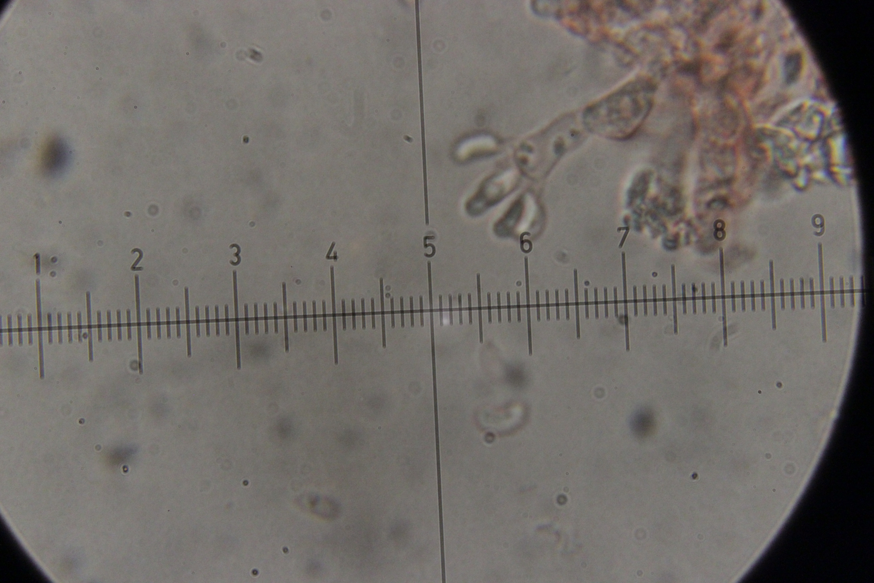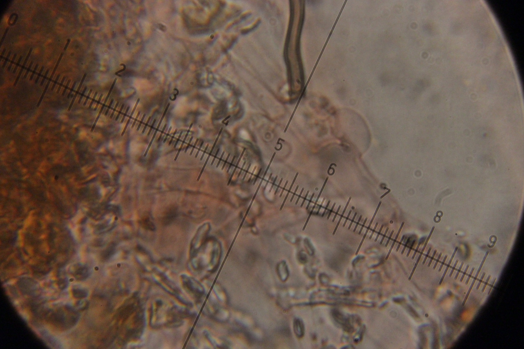 Die Sporen passen zu C. gilvescens zwischen den normale Sporen gab es auch einige sehr große Sporen, viell. fremd Sporen.