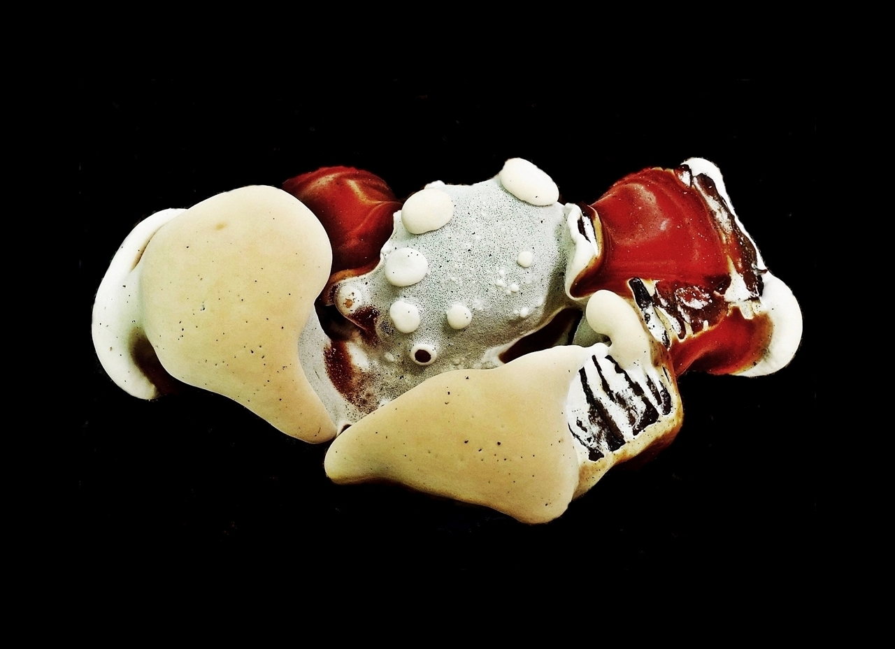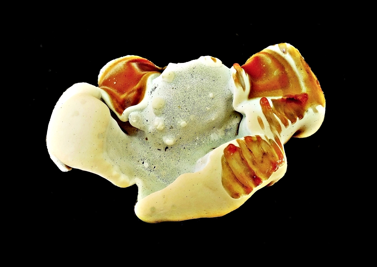 Die surréalen Formen und Farben kommen dabei durch den schwarzen Hintergrund sehr gut heraus, und auf den ersten Blick ist es ein abstraktes Farbkunstwerk; erst auf den zweiten Blick erkennt man den Pilz.