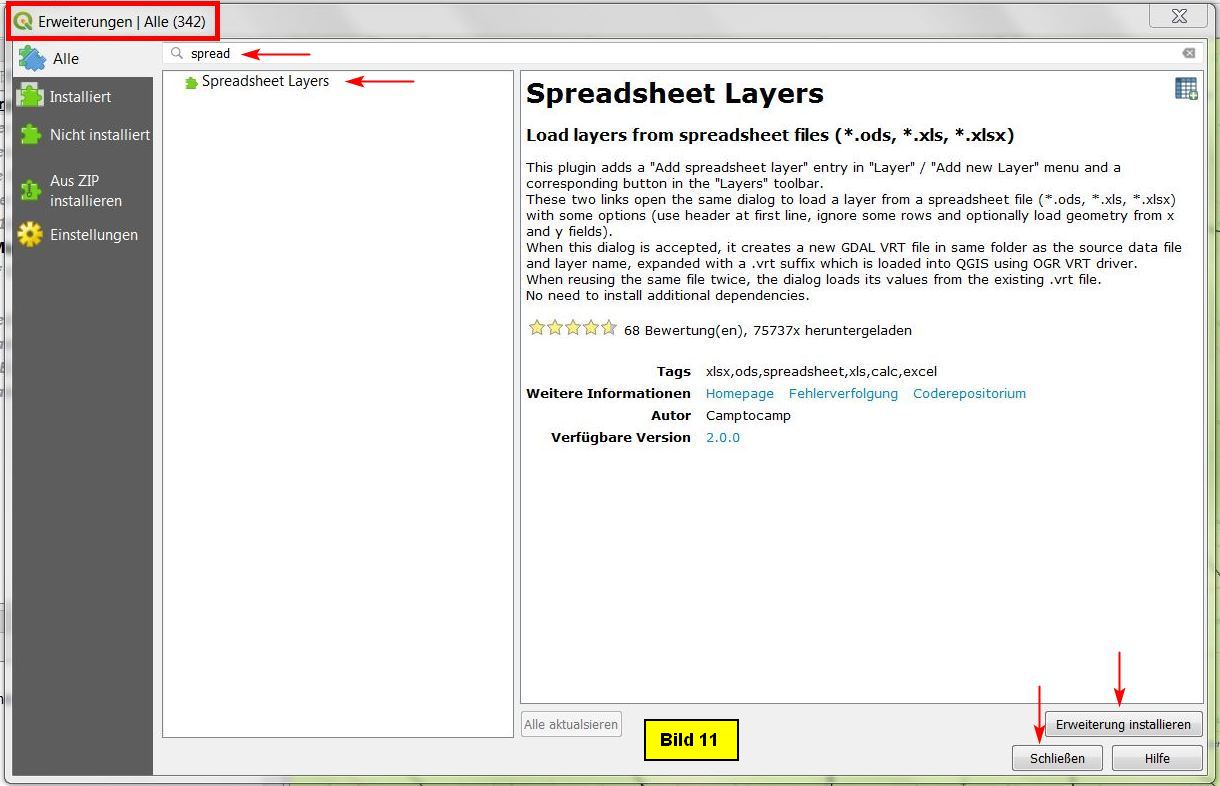 B) Installieren des Plugins Spreadsheet Layers