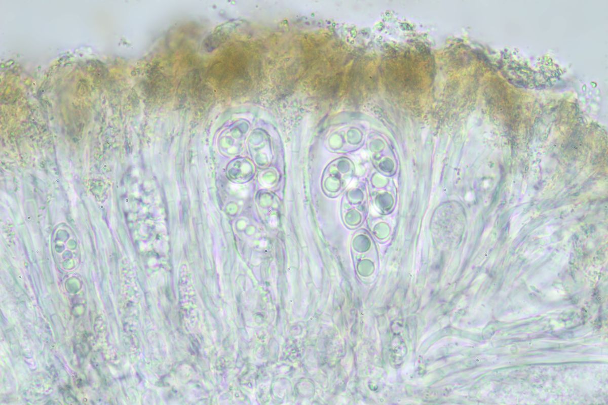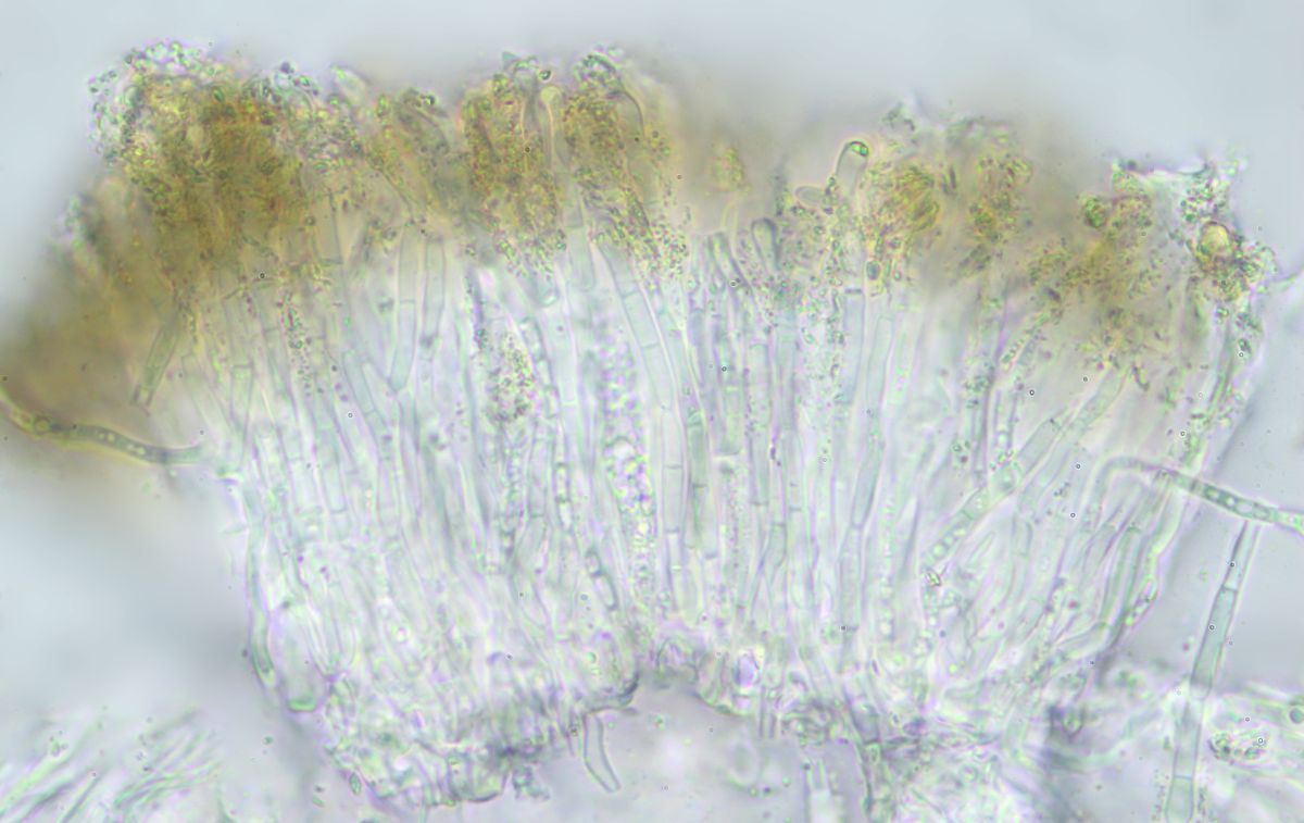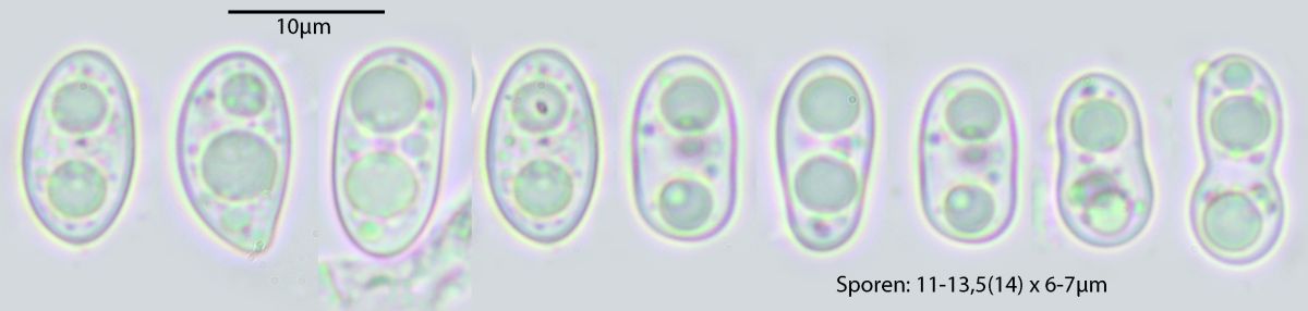 Eine Sache würde mich bezüglich der Sporen aber sehr interessieren: Ich finde hier regelmäßig in der Mitte eingeschnürte Sporen (siehe Sporenbild ganz rechts), ist das normal, sind die irgendwie einfach atypisch ausgeprägt oder hat das vielleicht sogar eine Bedeutung für die Bestimmung?