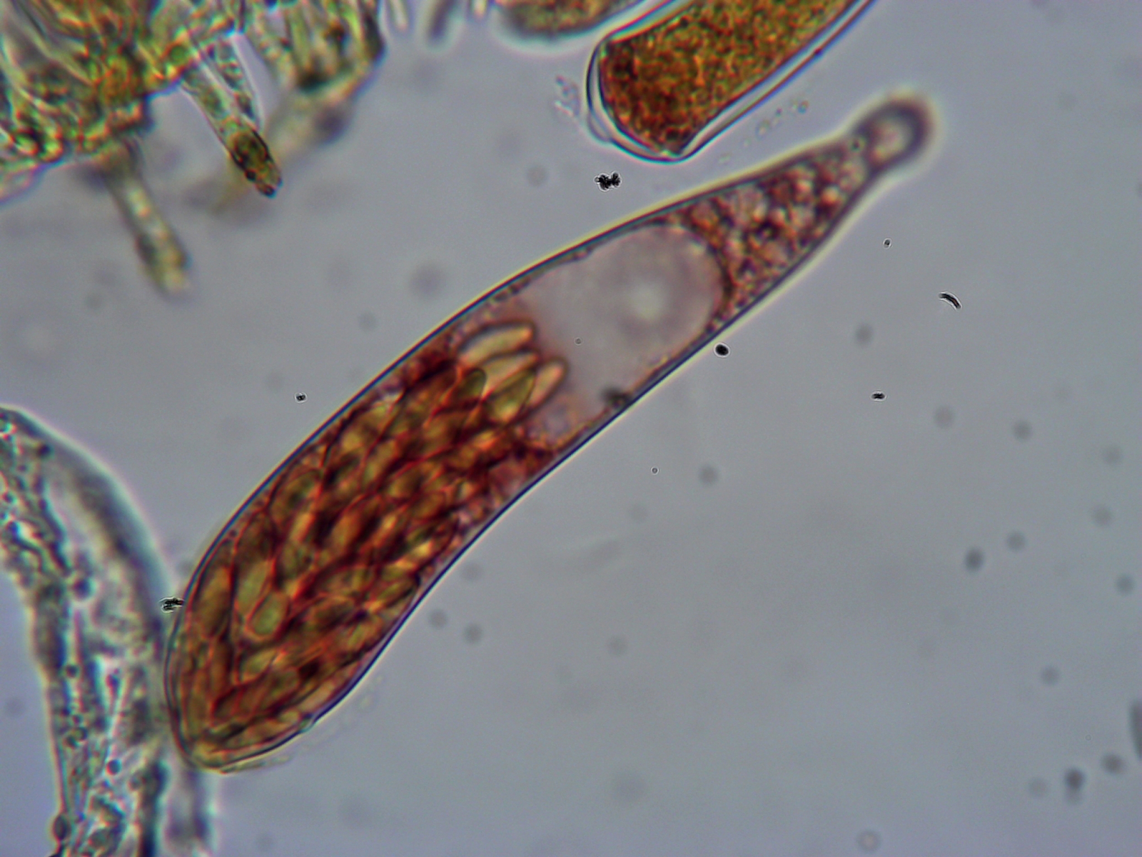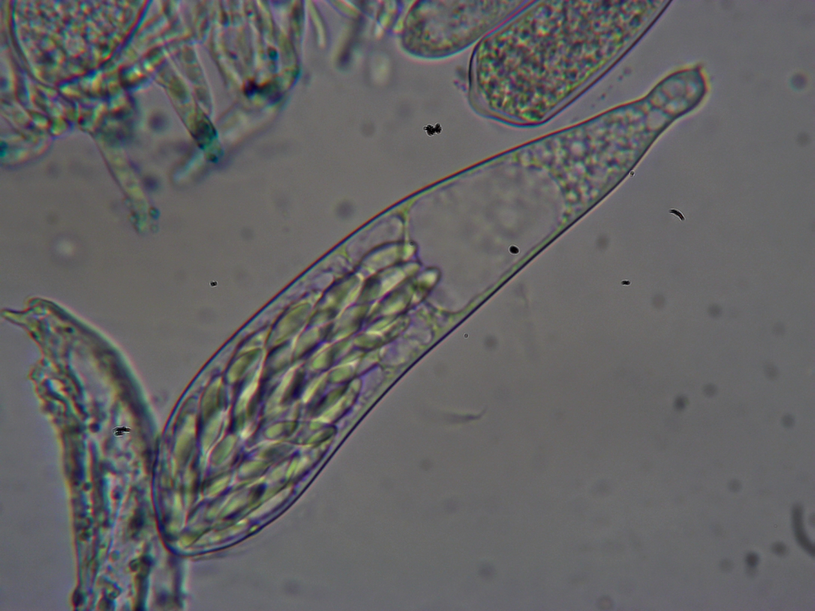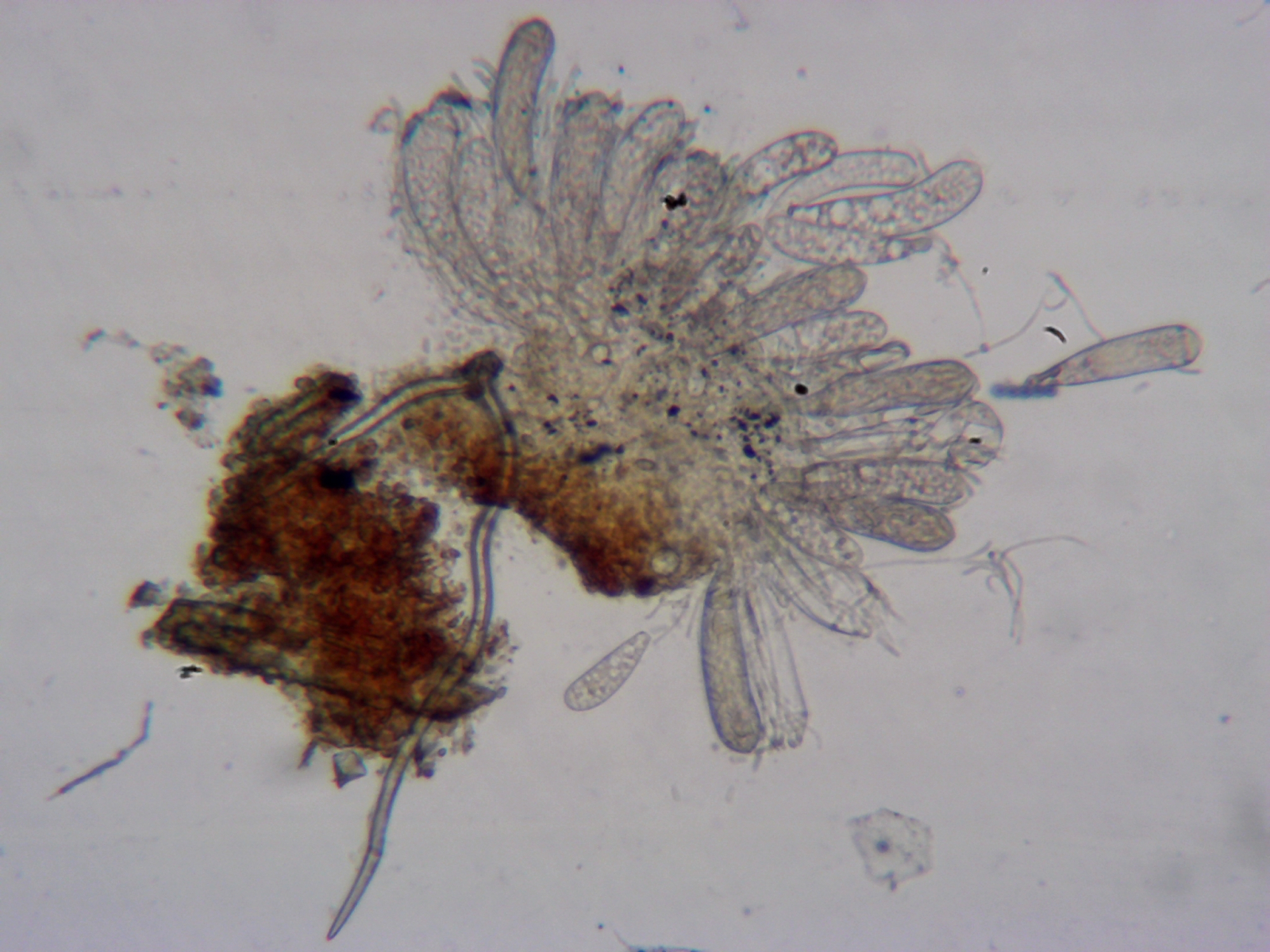 meine Mädels haben zwei Karnickel namens Ron und Ginny (Ihr dürft 3 x raten, was die Lieblingsbücher meiner Töchter sind). Nach 5 Tagen in der Feuchtkammer habe ich auf den Köddeln heute winzige weiße Becherchen mit Zotteln an der Basis gefunden. Die Asci sind mindestens 32- vermutlich aber 64-sporig und leider noch nicht ganz reif. Bestimmt habe ich die als Ascozonus woolhopensis.