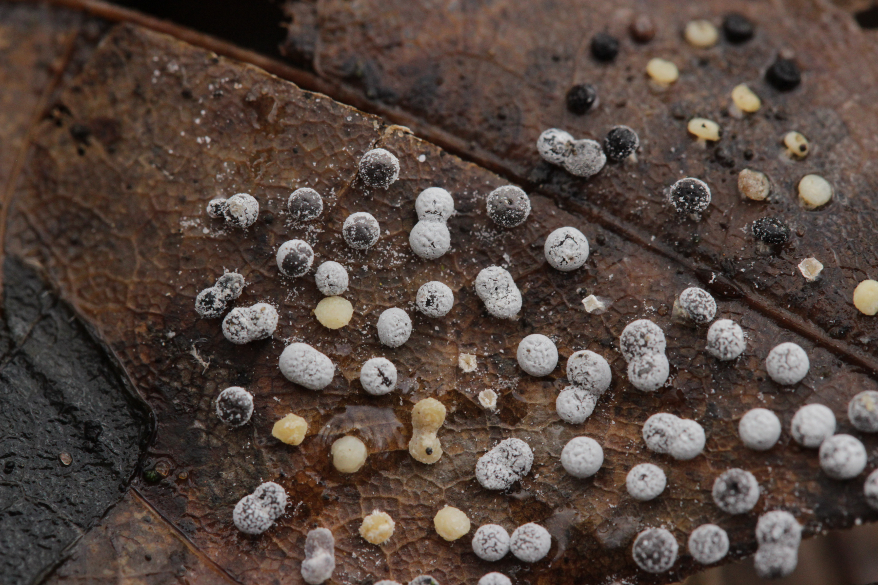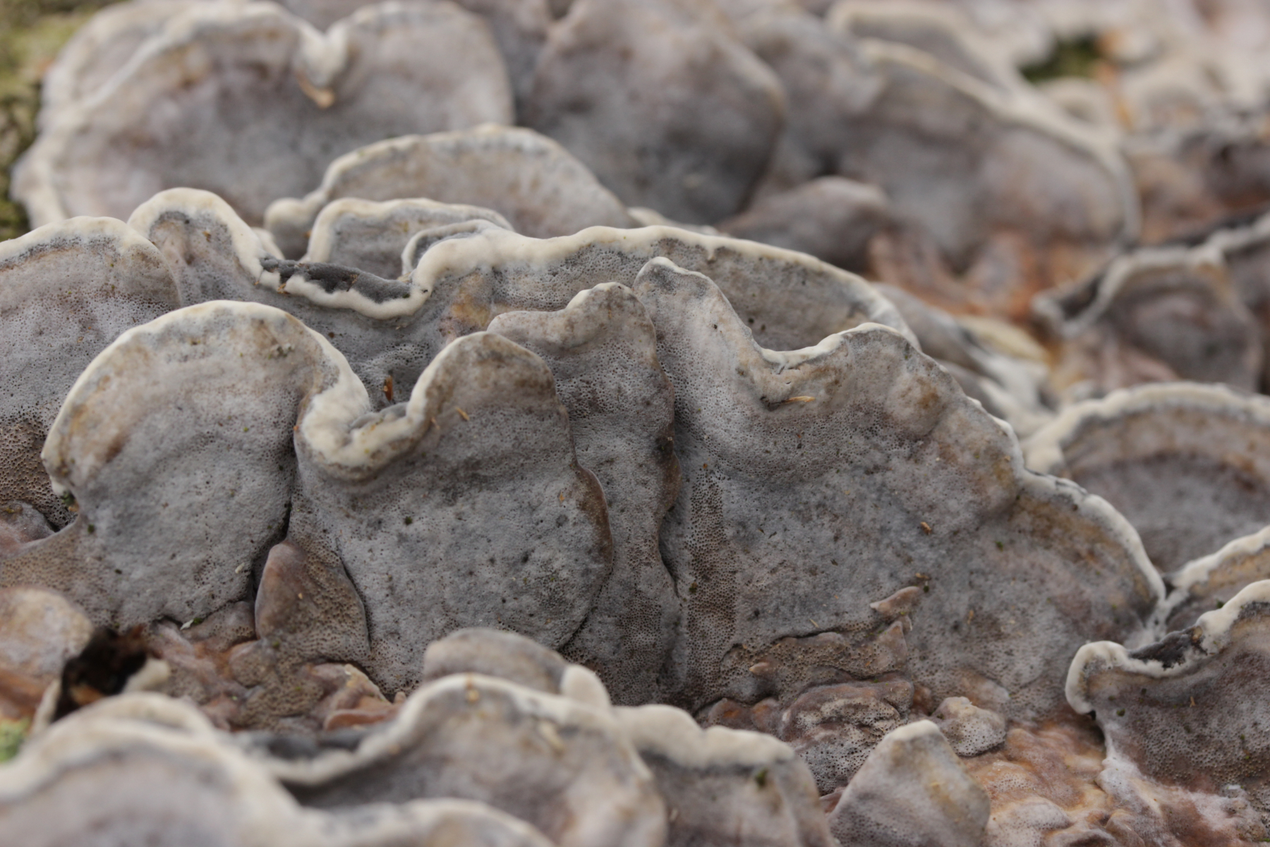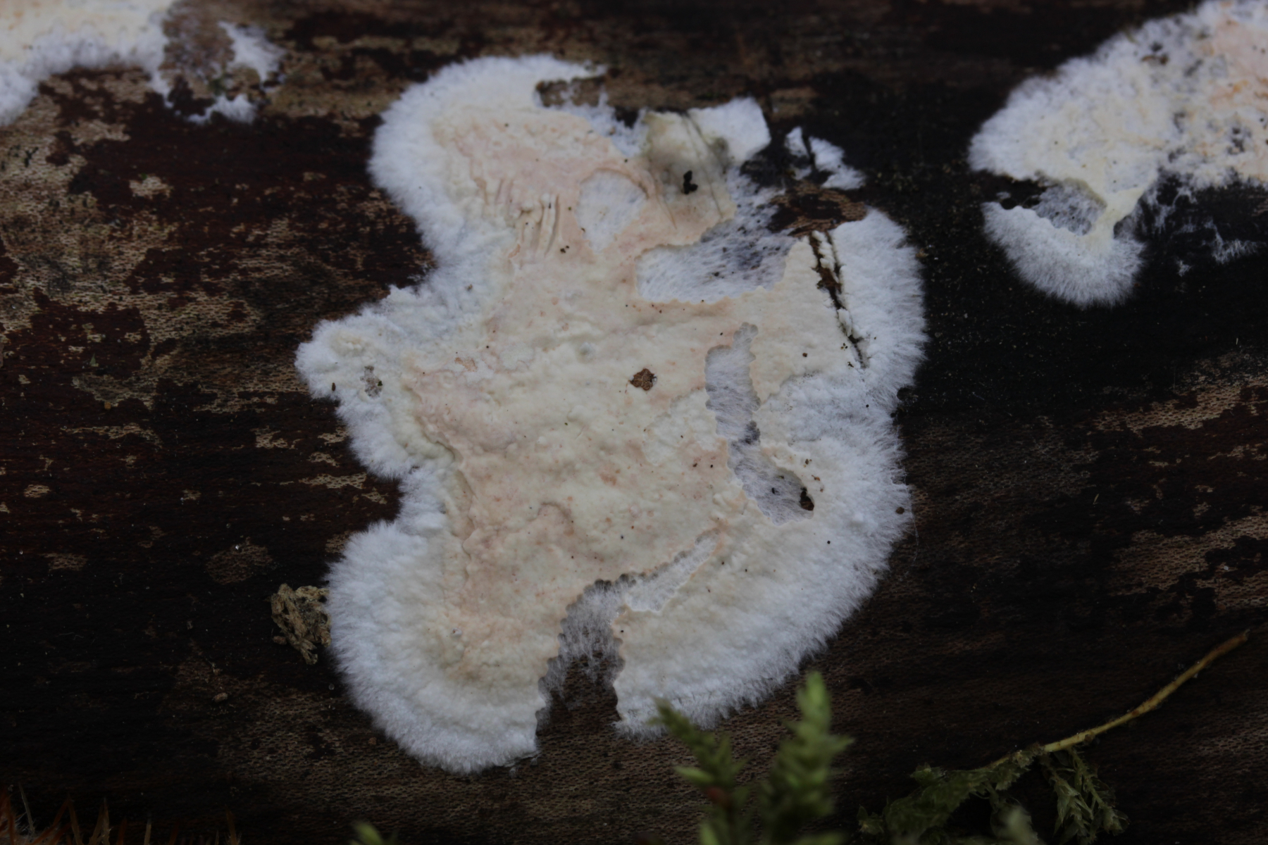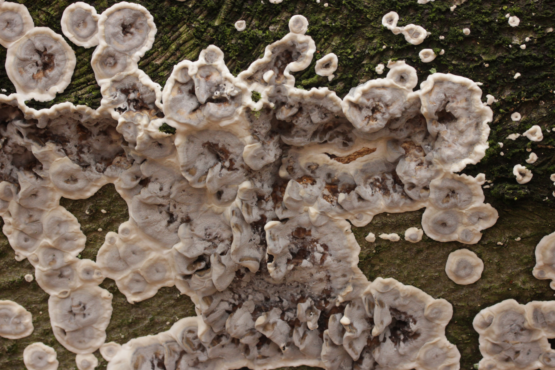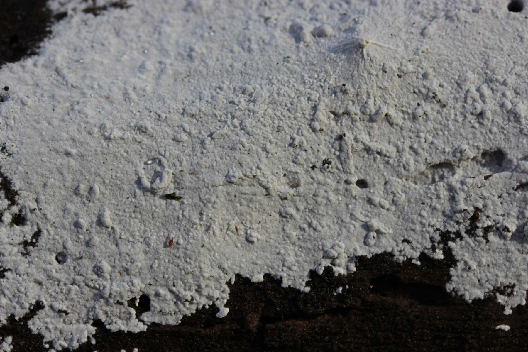 Der Rindenpilz (5) danach sieht interessant aus. Gehören die Sporen tatsächlich dazu und sind es auch Basidiosporen oder Konidien?