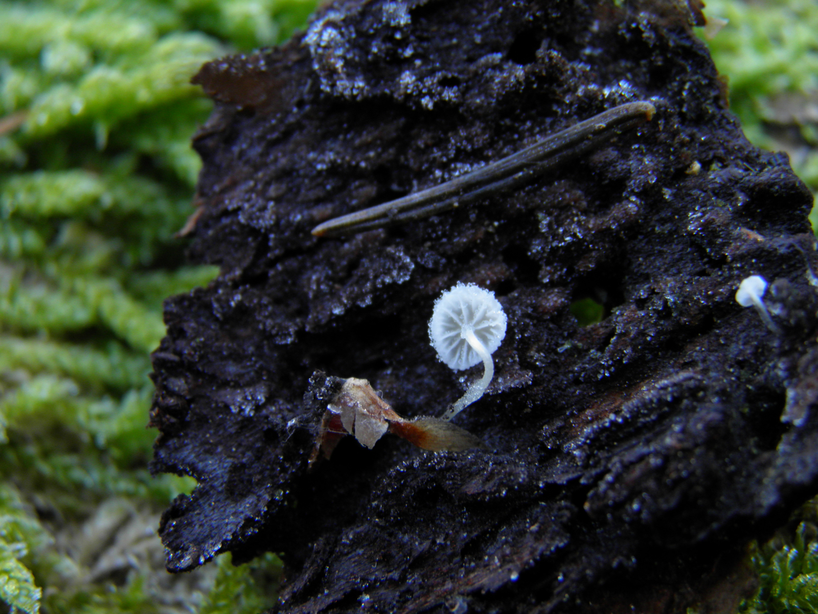 14 ist höchstwahrscheinlich eine Hemimycena, aber man bräuchte die Hutoberseite um kleine Vertreter von Mycena insbesondere die der Sektion Sacchariferae sicher auszuschließen, letztere hätte feine Körnchen auf der Oberfläche. Wenn es eine Hemimycena ist wäre mauretanica naheliegend, aber leider ist in der Gattung makroskopisch nahezu keine Sicherheit zu bekommen. Mikroskopisch sind die meisten zwar gut charakterisiert, sind aber oft recht aufwändig in der Untersuchung.