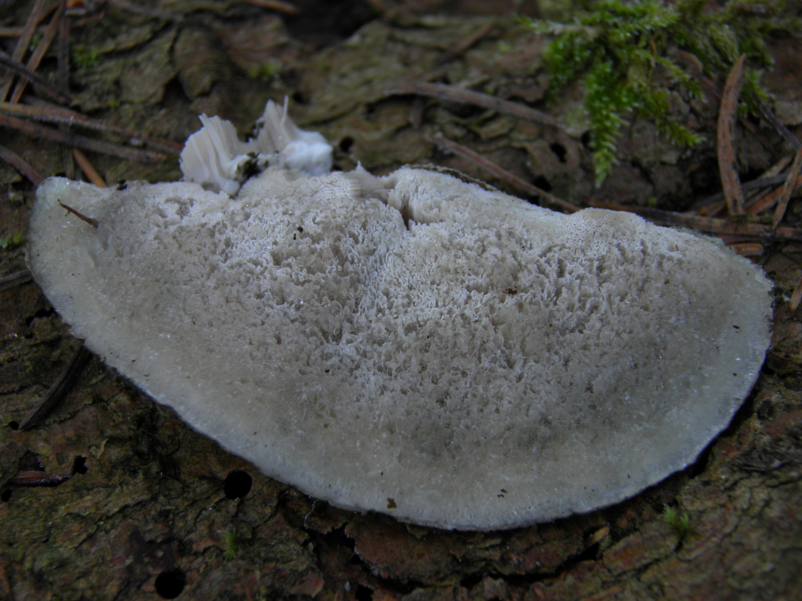 geht für mich ja in Richtung Steccherinum ochraceum der nicht weiß dass er nur an laubholz wachsen sollte
