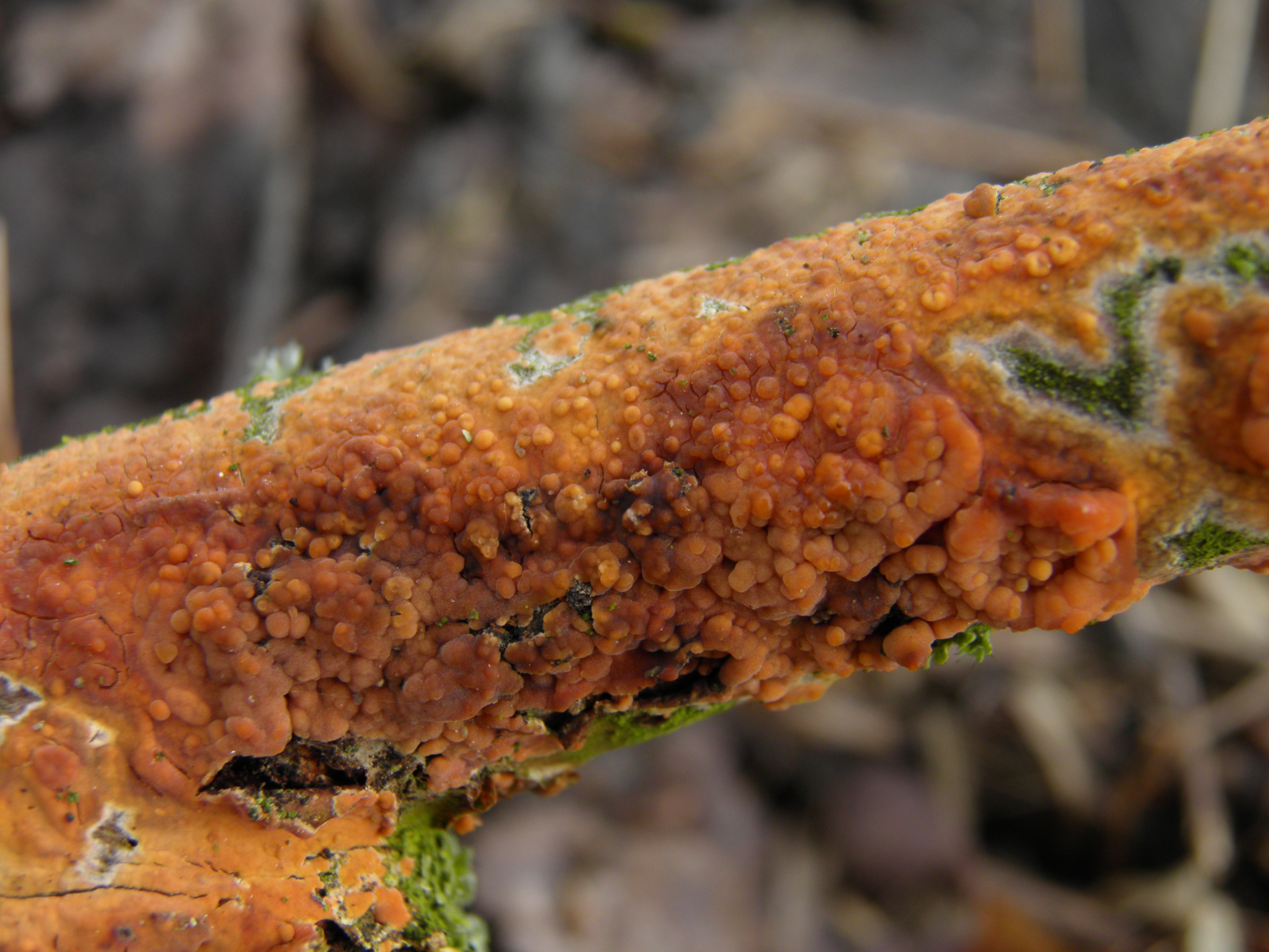Der schicke orangene zum Schluss: An Walnuss oder Haselnuss? Erle ist auszuschließen? Weil für Peniophora incarnata macht der doch einen extrem knubbeligen Eindruck. Es wäre schon möglich, aber eben extrem am Rande der Variationsbreite, da könnte man auch ruhig noch mal nachgucken.