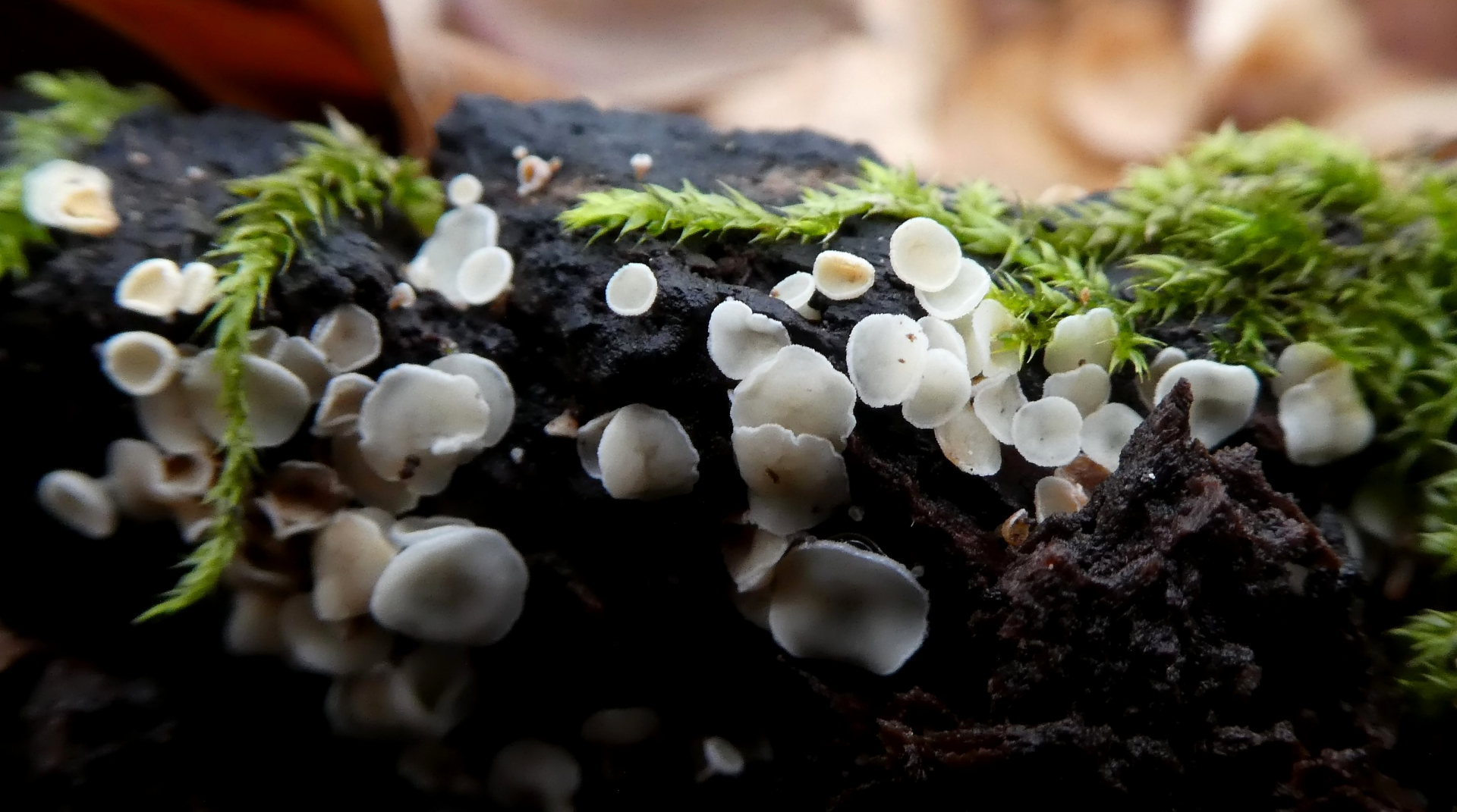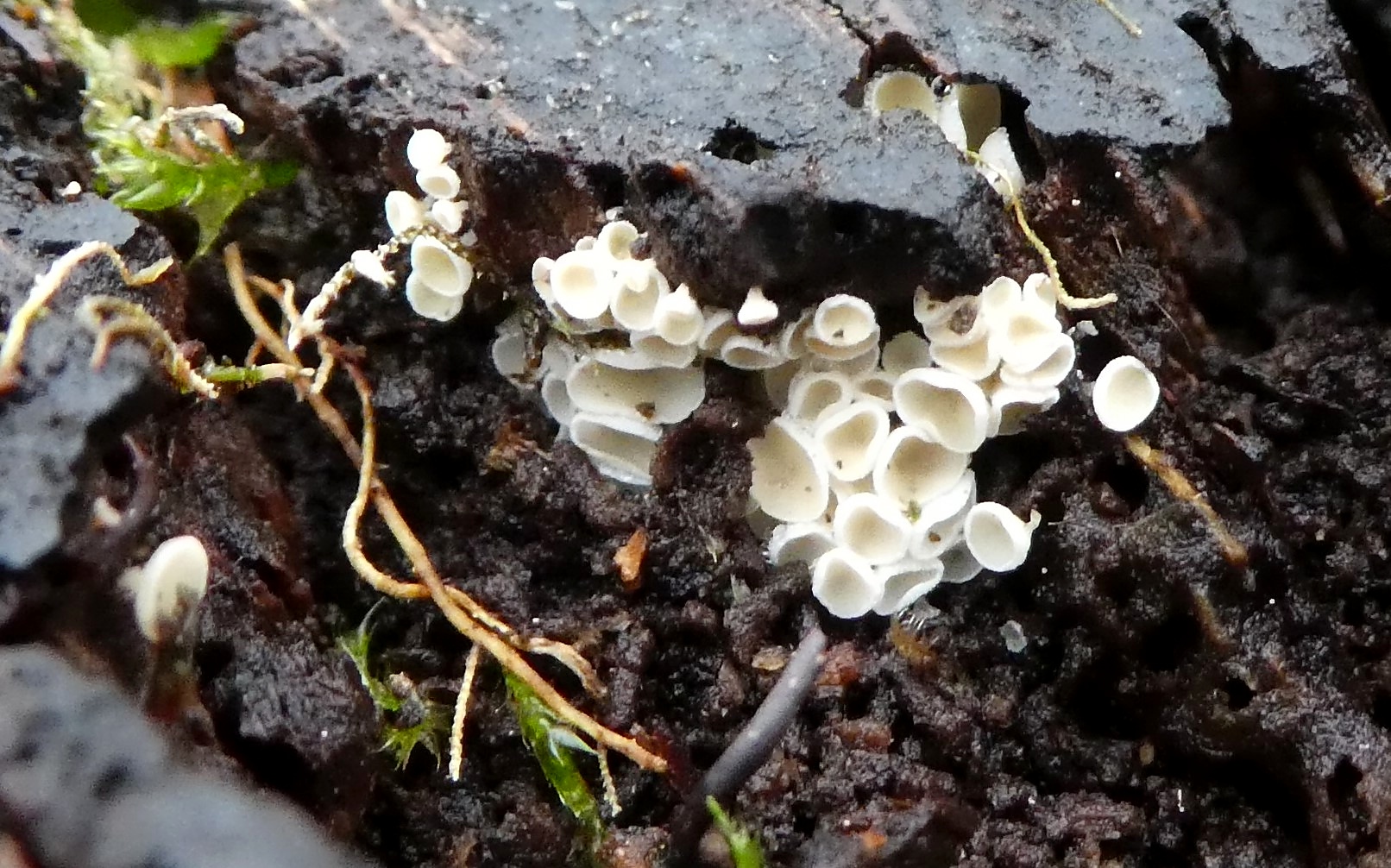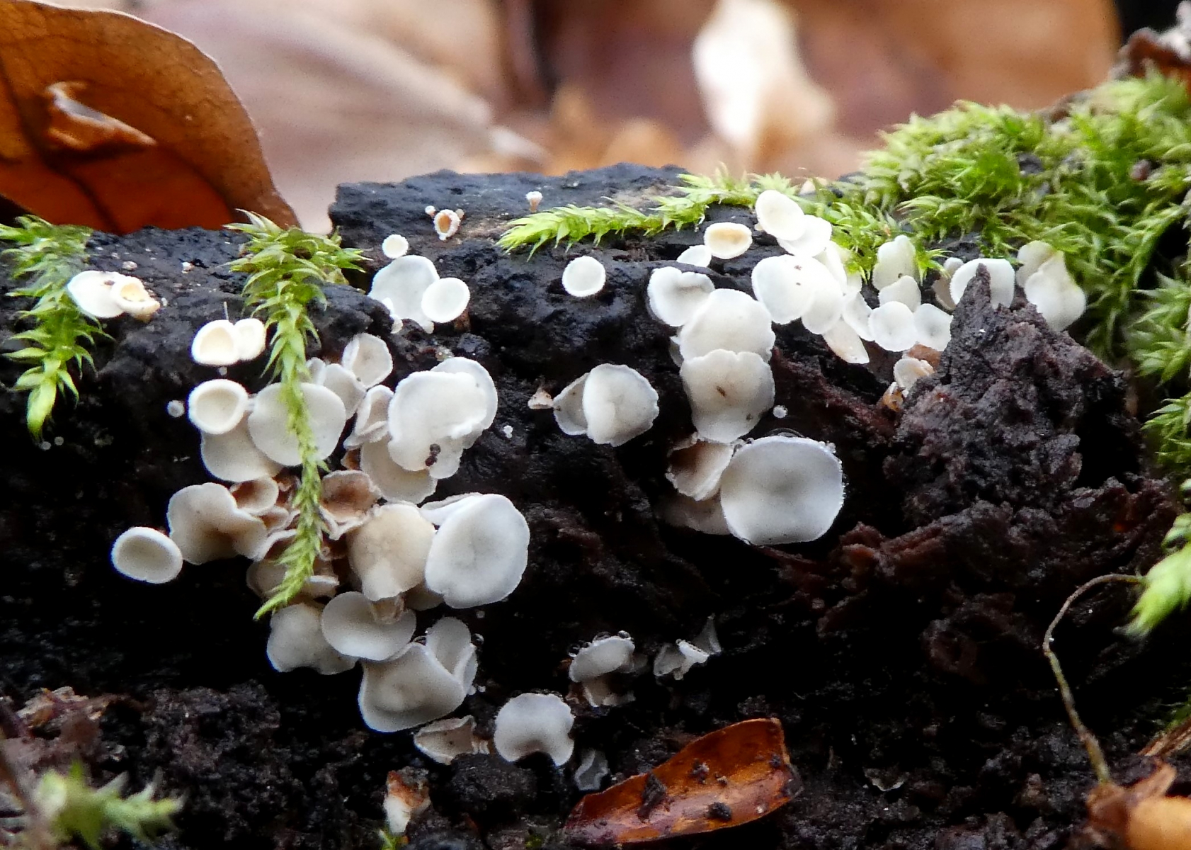 Ich habe ein kleines Stück Holz mit ein paar dieser Pilzchen mitgenommen, dieses allerdings mangels anderer Möglichkeit in einer kleinen Plastiktüte transportiert. Jetzt, vielleicht 2 Stunden später, hat sich die Farbe der Pilze ins gelb-orange verändert.