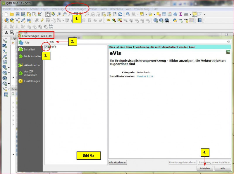 eVis gehört zur Grundausstattung von QGIS 3.x und muss nur aktiviert werden: