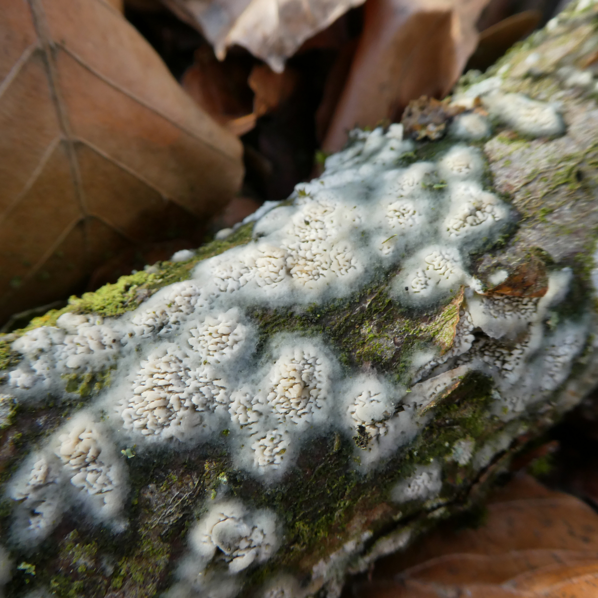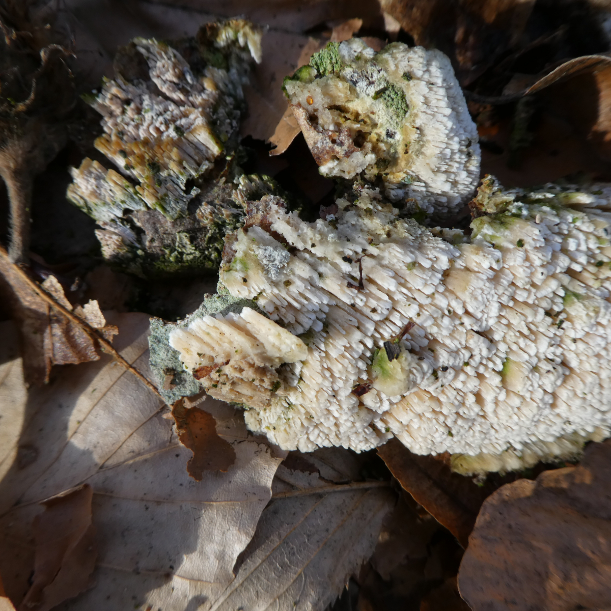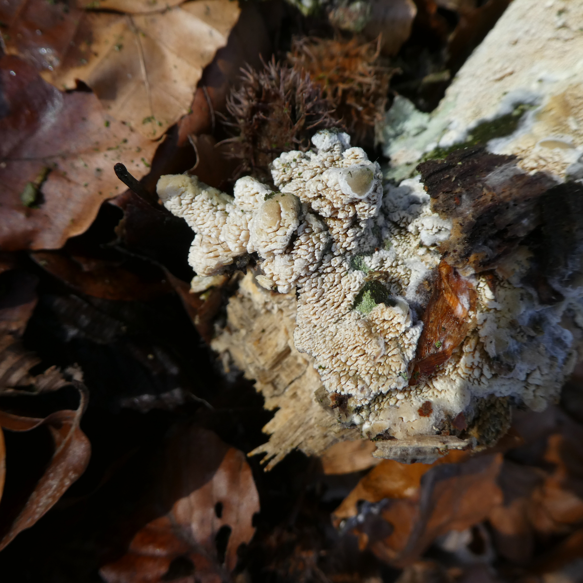 eigentlich wollte ich erst einmal keine Rindenpilze mehr fotografieren und versuchen zu bestimmen, der hier stach mir heute allerdings sofort ins Auge. Über meine Recherche bin ich (über 123) irgendwie in Richtung Basidioradulum crustosum gekommen, ob dies aber stimmt?