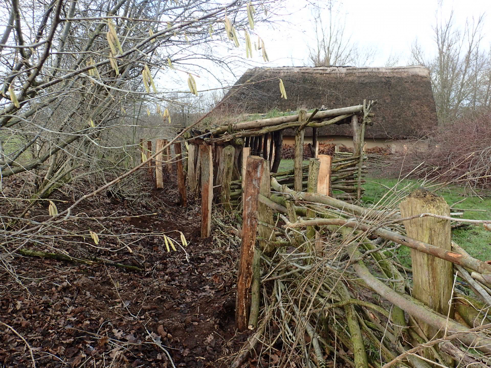 Hier an diesem Zaun wuchs der Pilz an Weidenästen, die im Vorjahr(?) verbaut wurden.