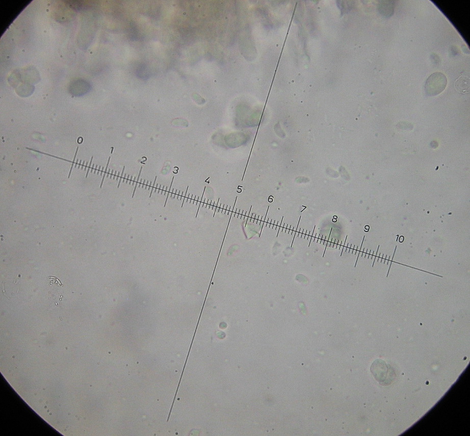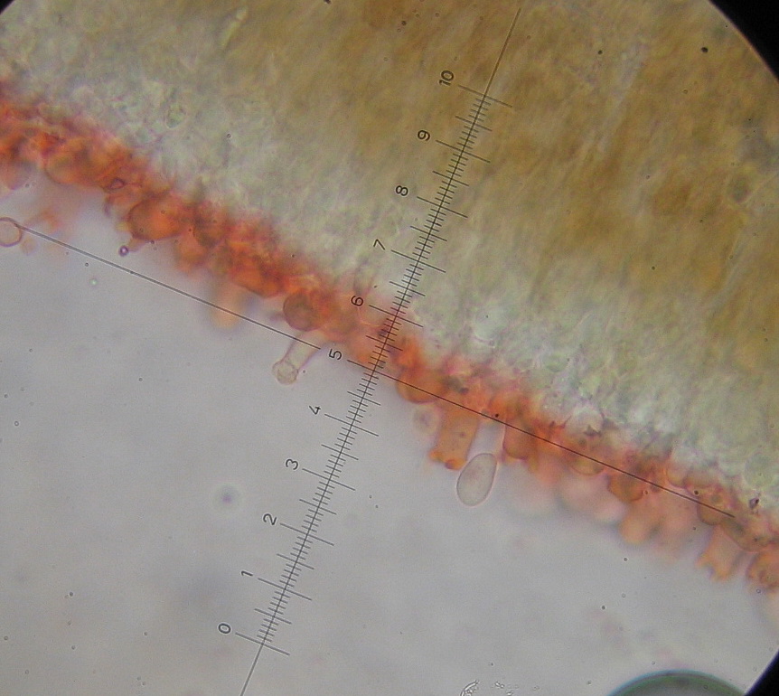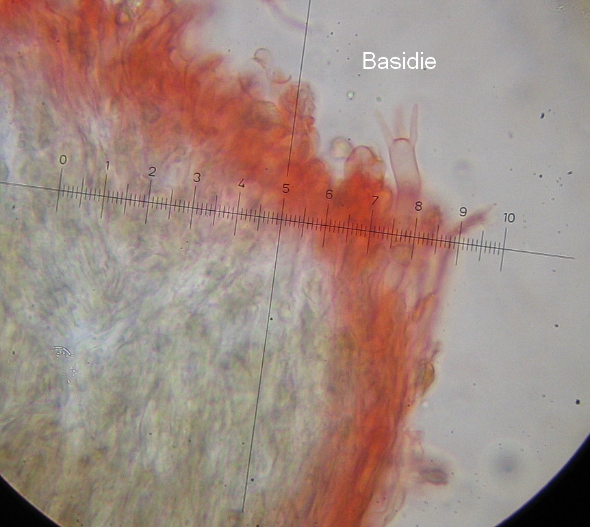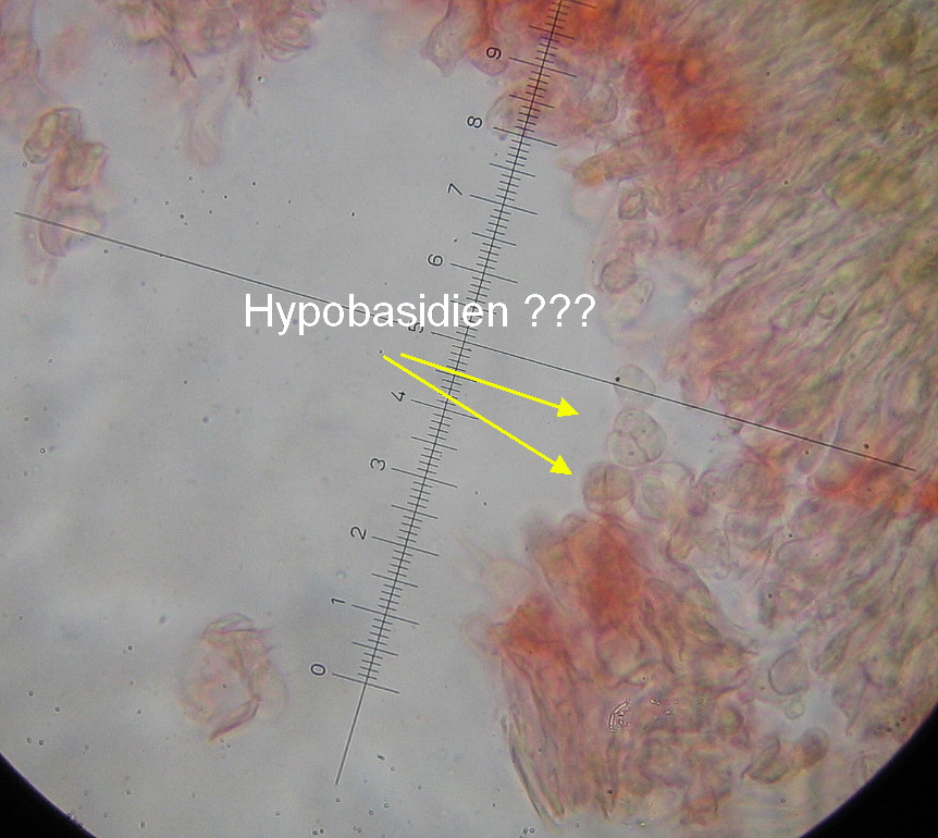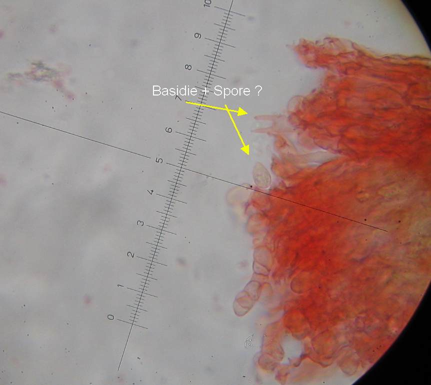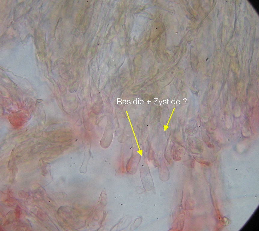 Hymenium in Kongo evtl inkrustriert Zystide. und Spore aber woher ? sie hängt nicht an der Basidie!