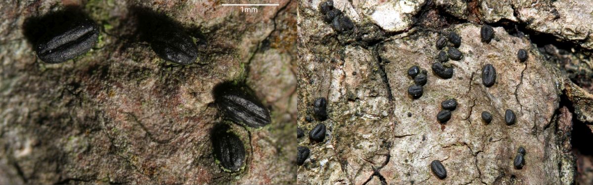 Und dann erst wird es offensichtlich, dass da Hysterium pulicare wächst: