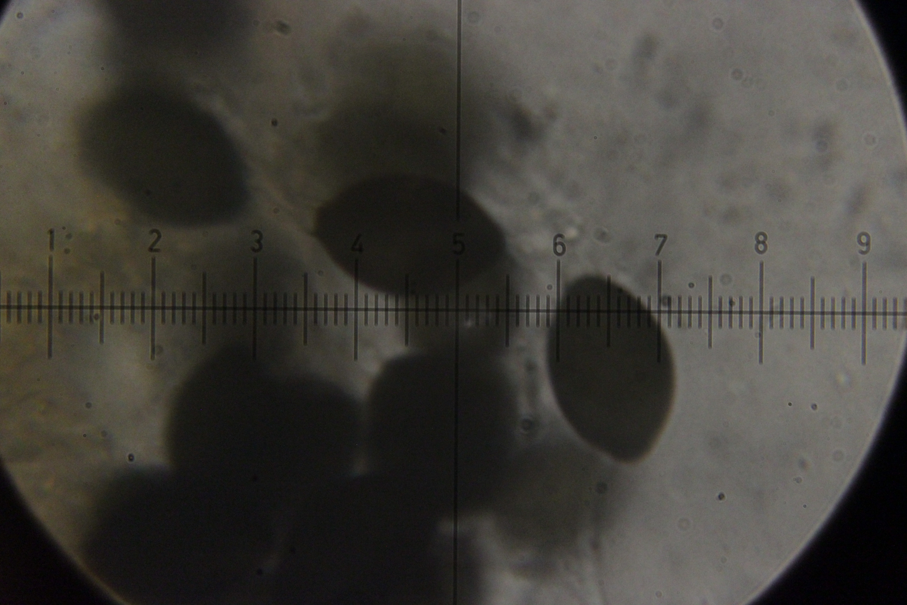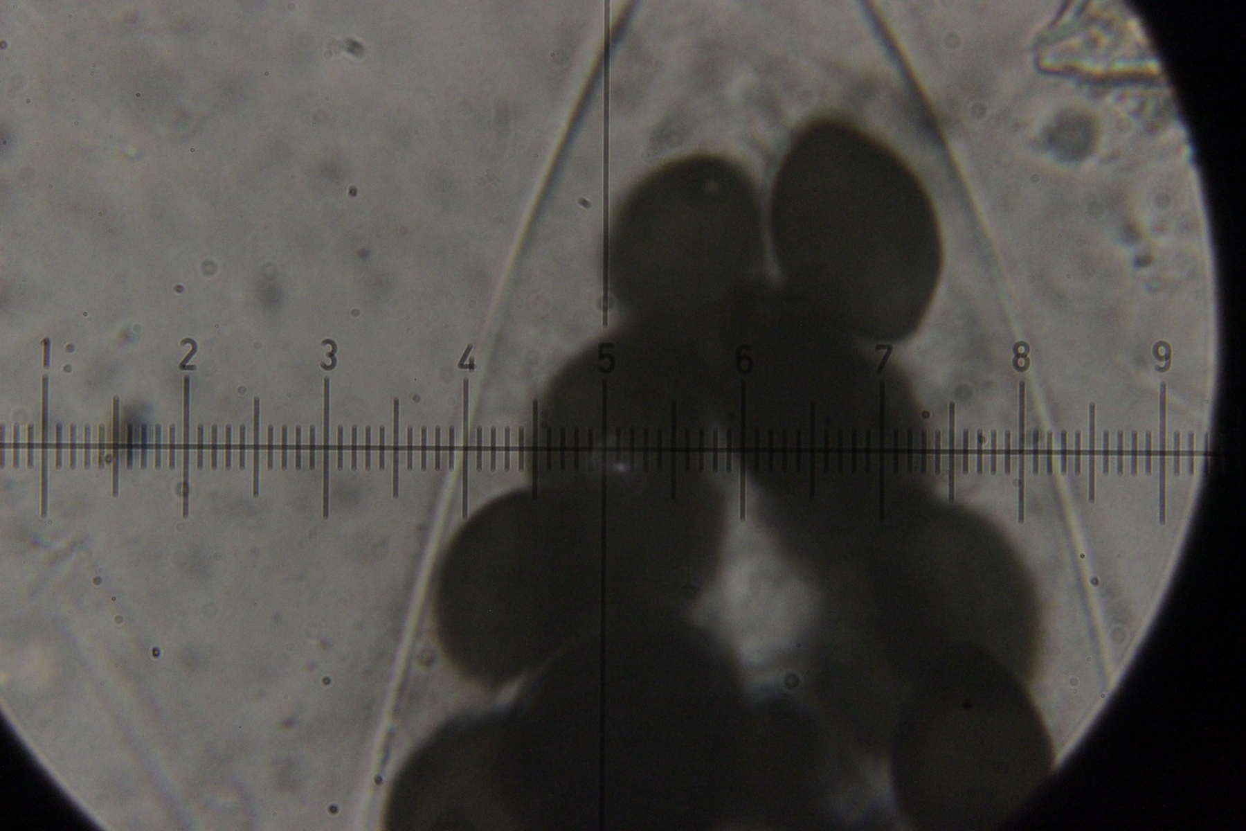 Gezählt habe ich nicht exakt, aber da sollten so um die 100 Sporen pro Ascus sein