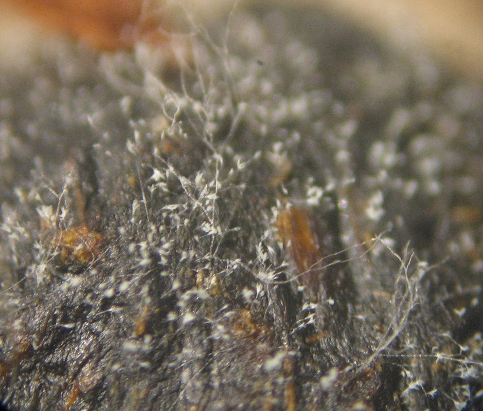 Winzige schwarze kugelförmige Gebilde auf der Oberfläche wachsend