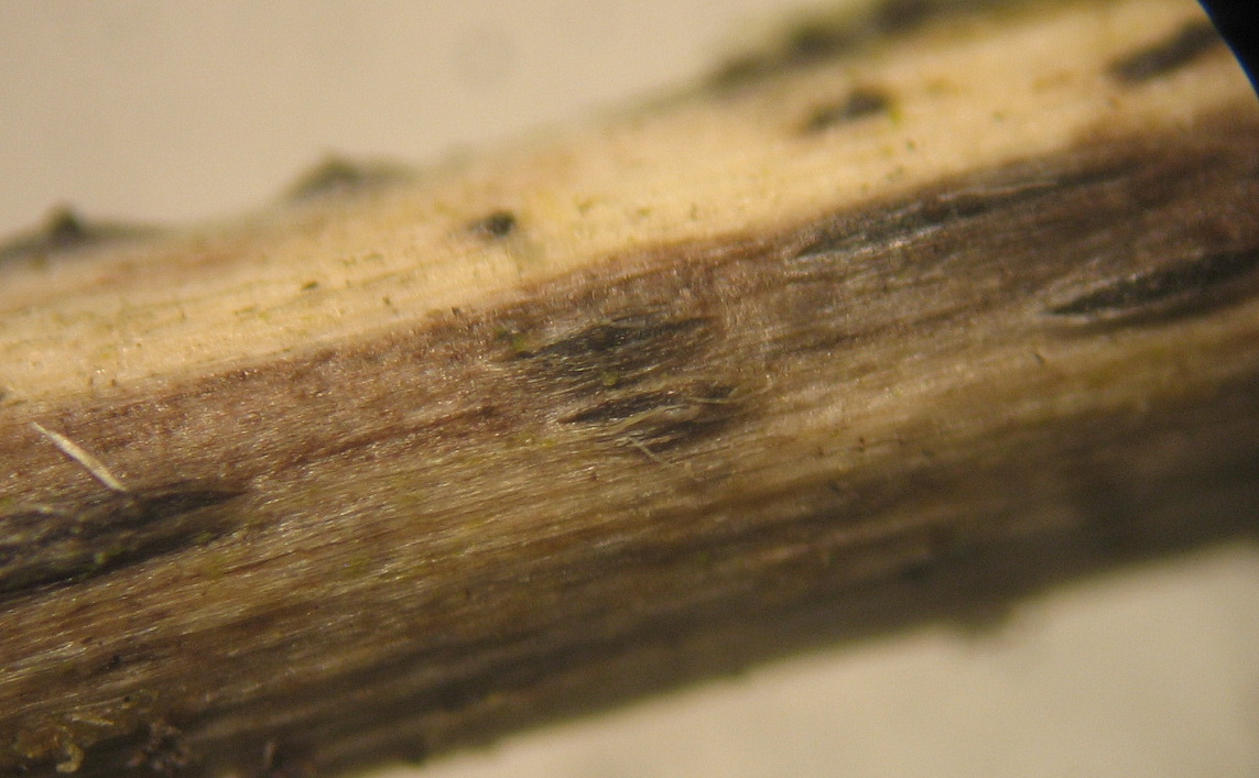 Perithecien braunschwarz mit deutlicher Ostiole durch die Rinde brechend