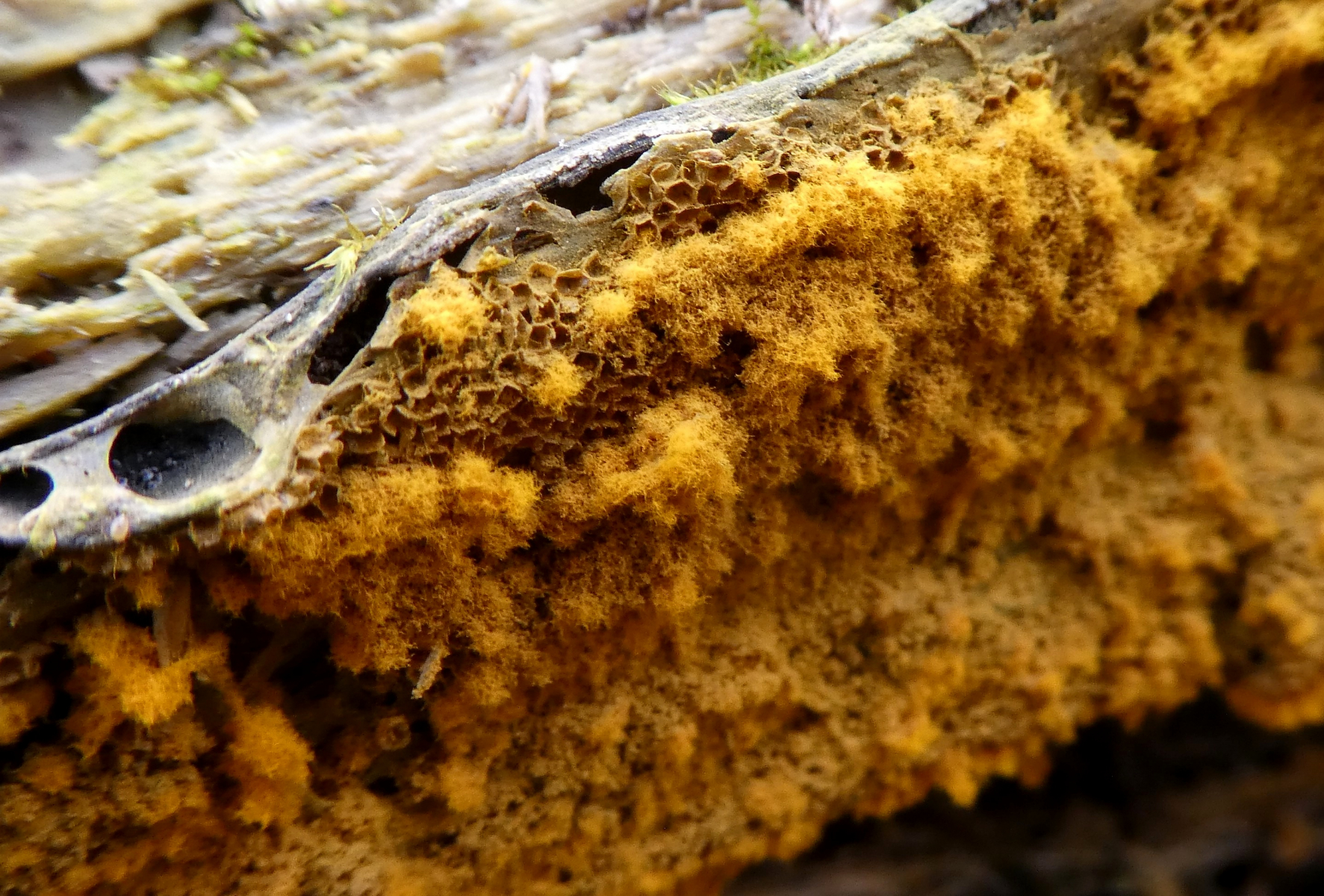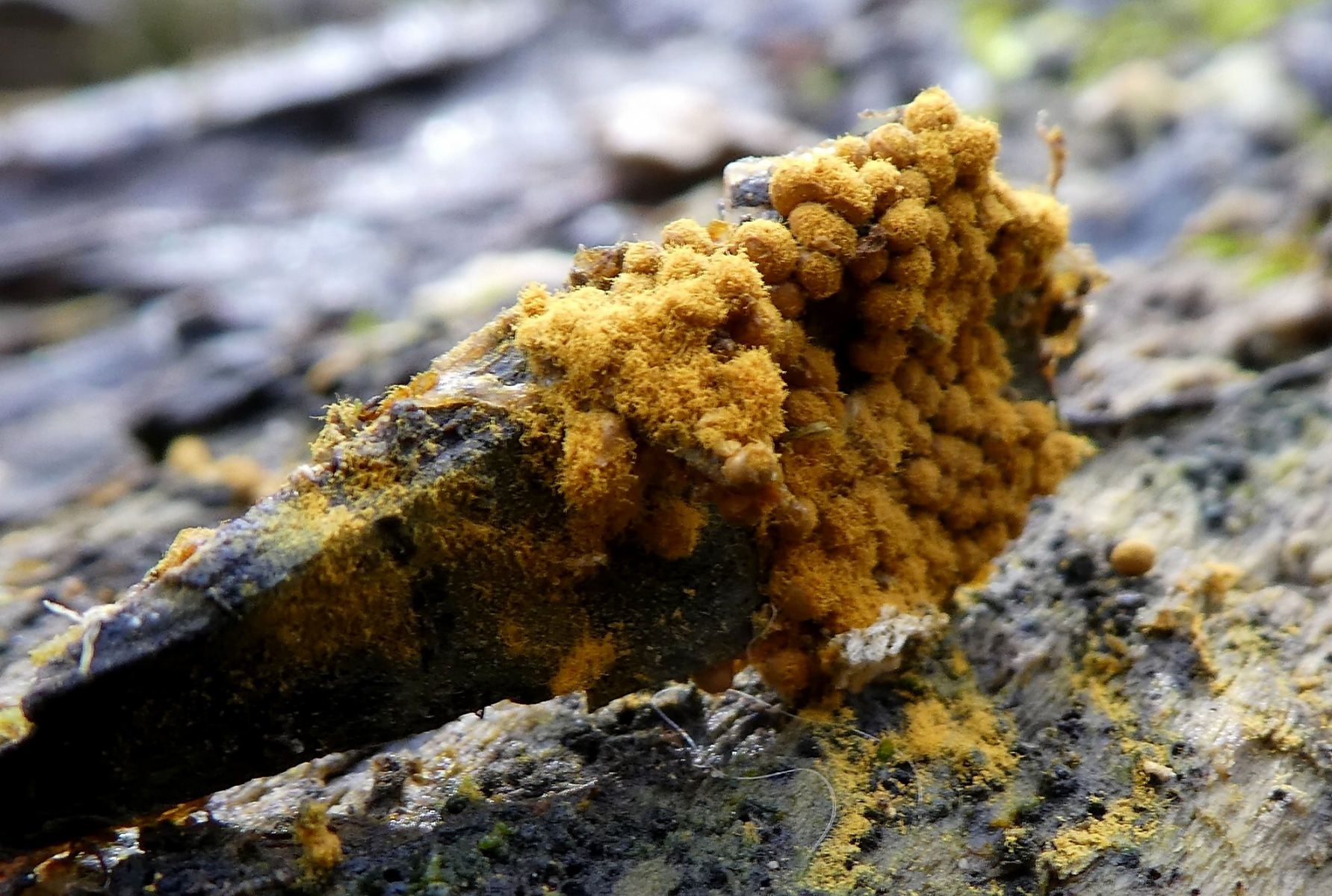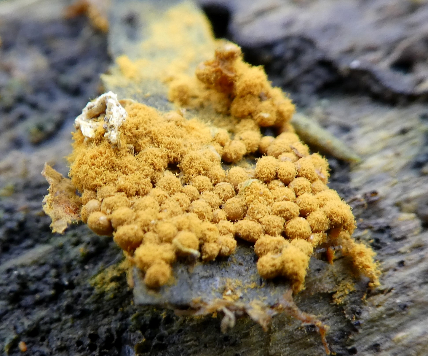 Da gibt es aber mehrere Arten die man nur mikroskopisch auseinderhalten kann. Trichia favoginea hat keine kugeligen Fruchtkörper sondern mehr zylindrische. Das sehe ich allerdings nicht so richtig (kann man aber nicht ganz ausschließen). Eher möglich sind Trichia scabra und T. persimilis. Trichia varia ist auch nicht ausgeschlossen.