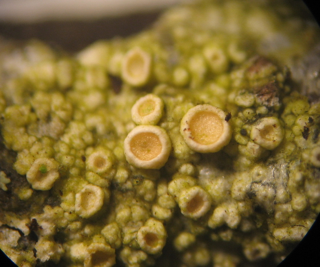 Die Apothecien unbereift in einem schönen warmen Braunton aber das weiss-punktierte Lager ?