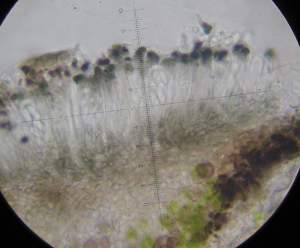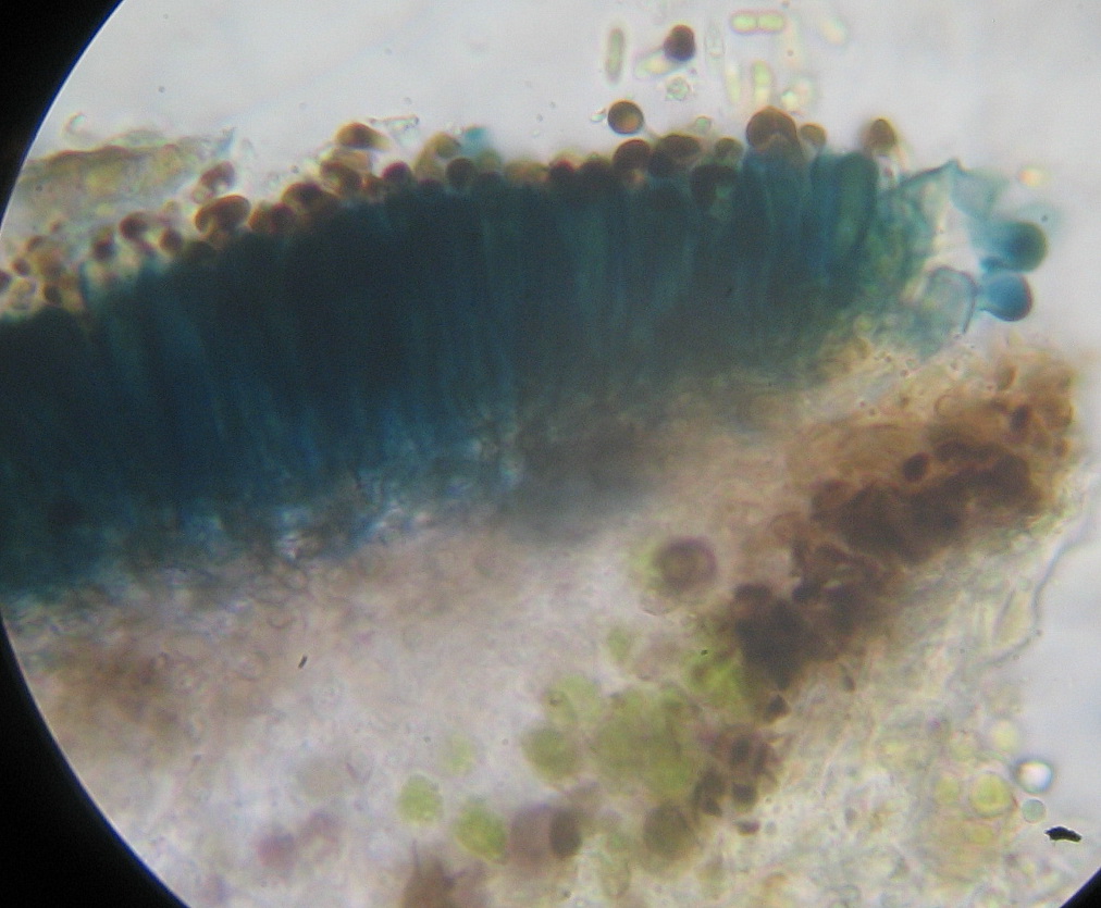 Asci: 35-40 x 15µ, blasig-keulig, Haken +, IKI deutlich blau