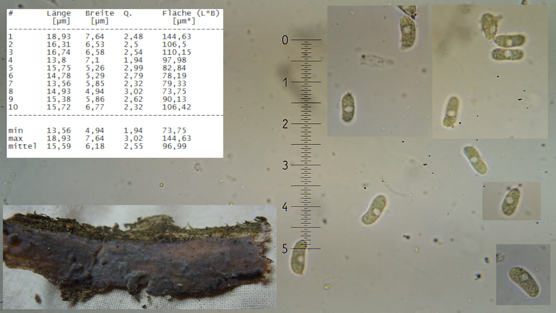 10,5-14,25 x 4-4,75 µm (wenige Sporen gemessen - n = 10, war eine relativ schnelle Untersuchung...)