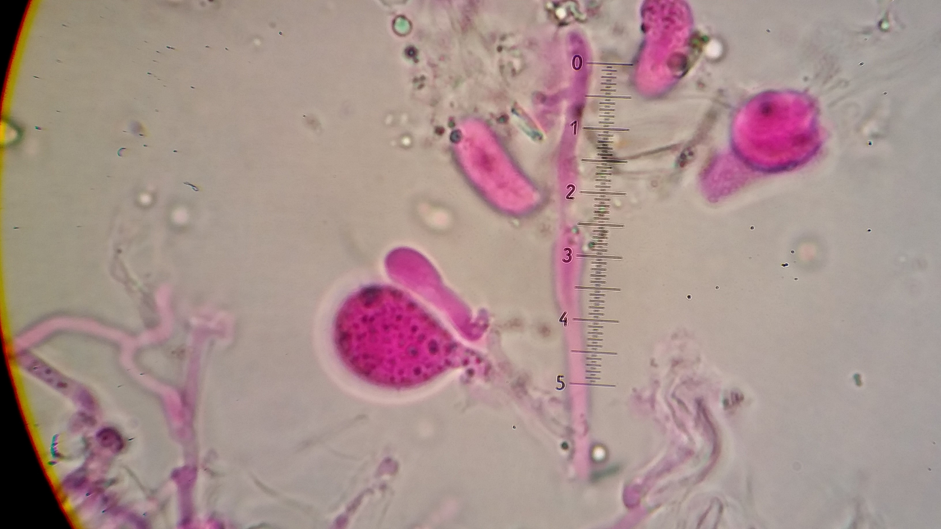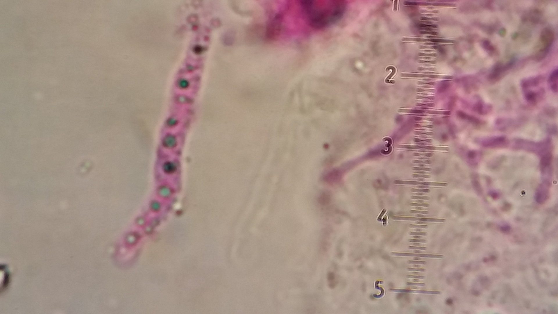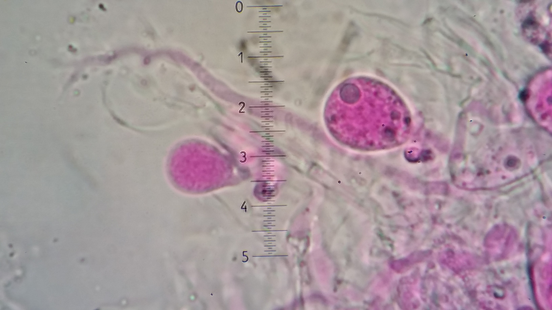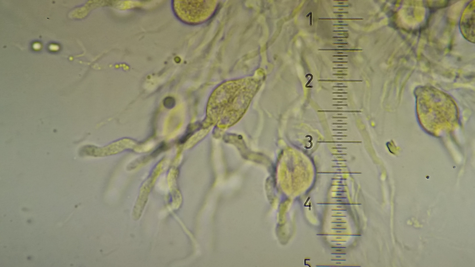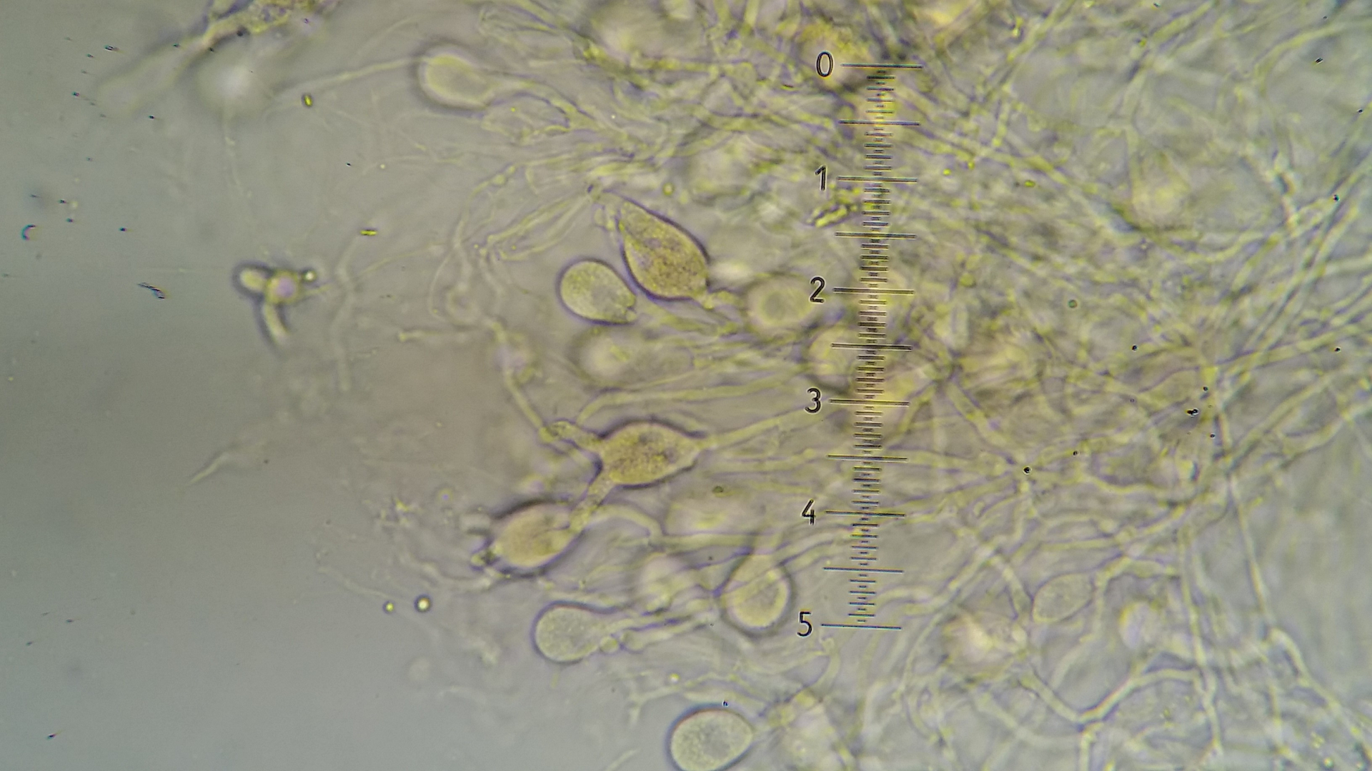 deshalb zeichne ich da lieber als dass ich fotografieren würde. Ein Problem ist die große Variabilität der Dikaryophysen. Es müssen ja nicht alle die verdickte Basis haben. Wells & Raitviir zeichnen auch komplett dünne Dikaryophysen, aber eben auch diese typischen mit breiter Basis.