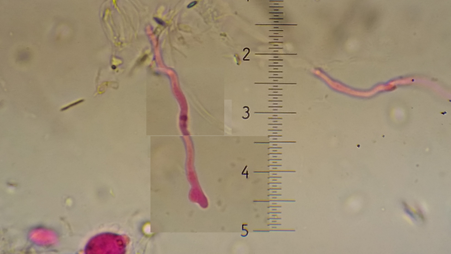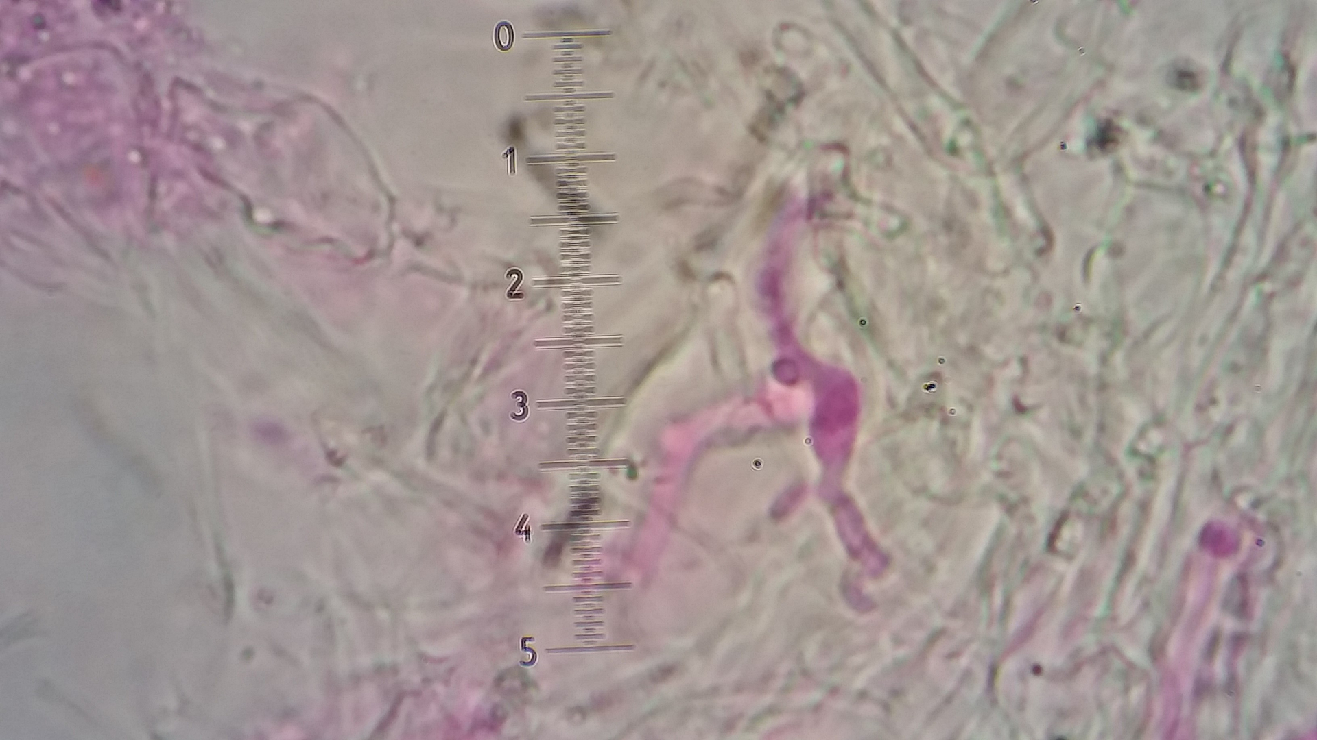 ich habe noch ein bisschen rein geschaut und solche Elemente wie auf den Bild sind keine zu sehen, Die Dikaryophysen sind dünn etwas wellig bis knörrig und apikal meistens bifurkat.