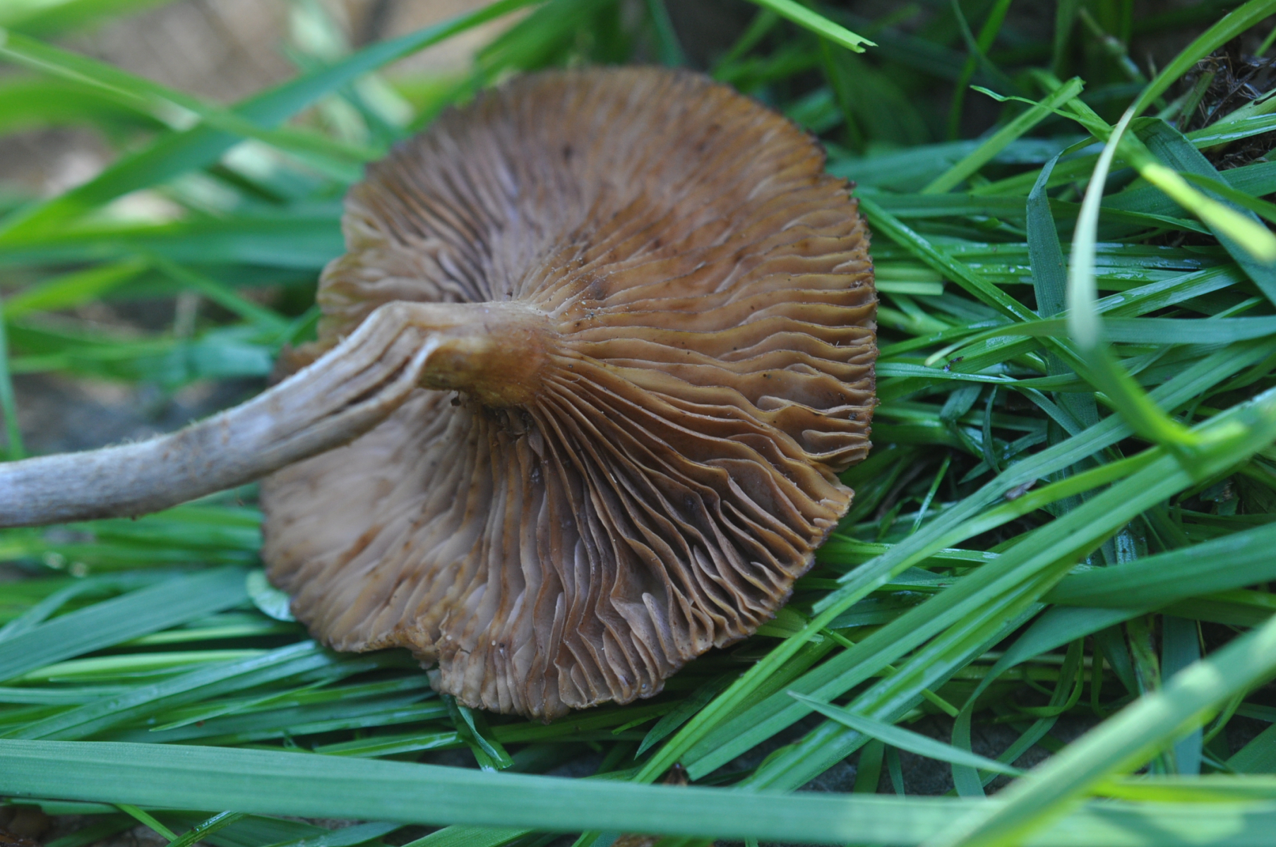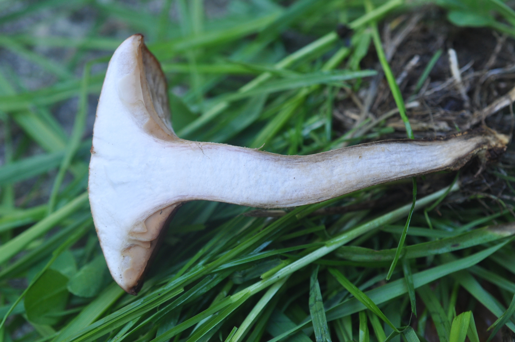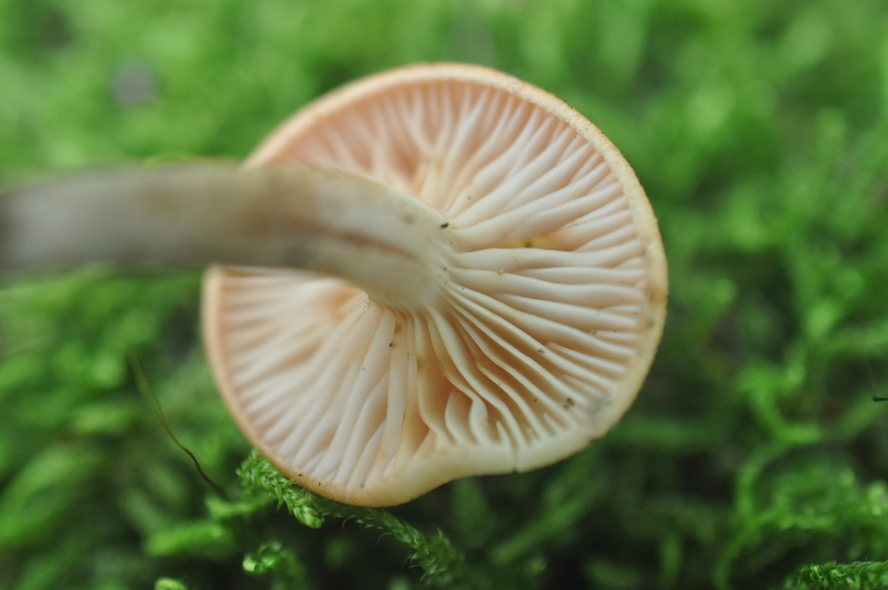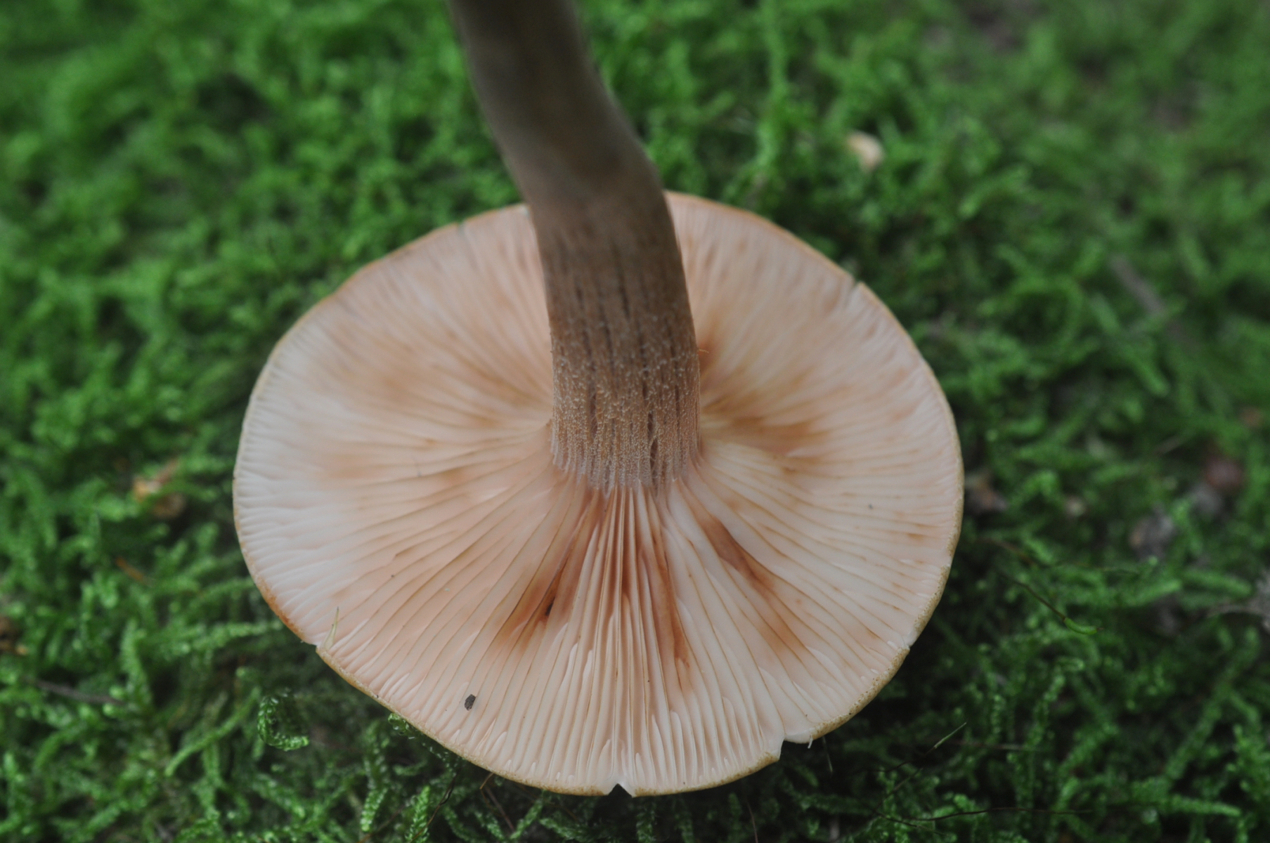 Lamellen : Weißlich bis cremeweiß in Alter rotbräunlich fleckend , angewachsen mit Zahn , herablaufend , wellige Schneiden