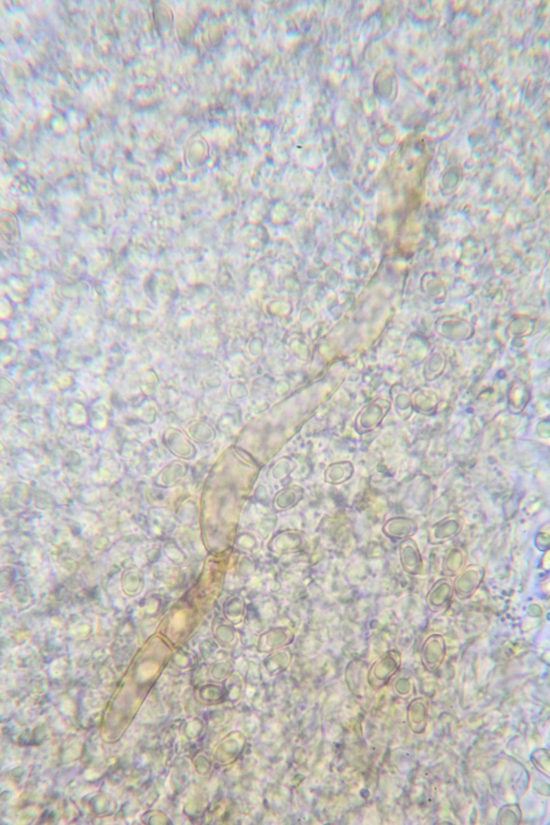 Pseudozystidien in der Lamellen Trama , max 35 x 10 Mikrometer