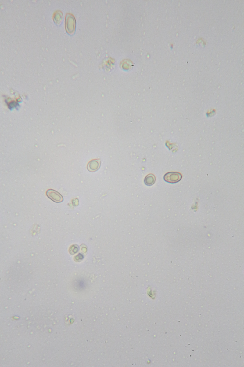 Sporengroße : 8 - 10 x 5 - 7 Mikromillimeter , elipsoidal , amyloid , glatt