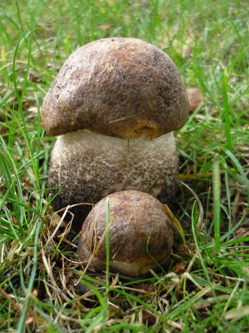 Der hier 4.) wuchs neben einer jungen Birke - wohl ein junger Birkenpilz mit kleinem Bruder.