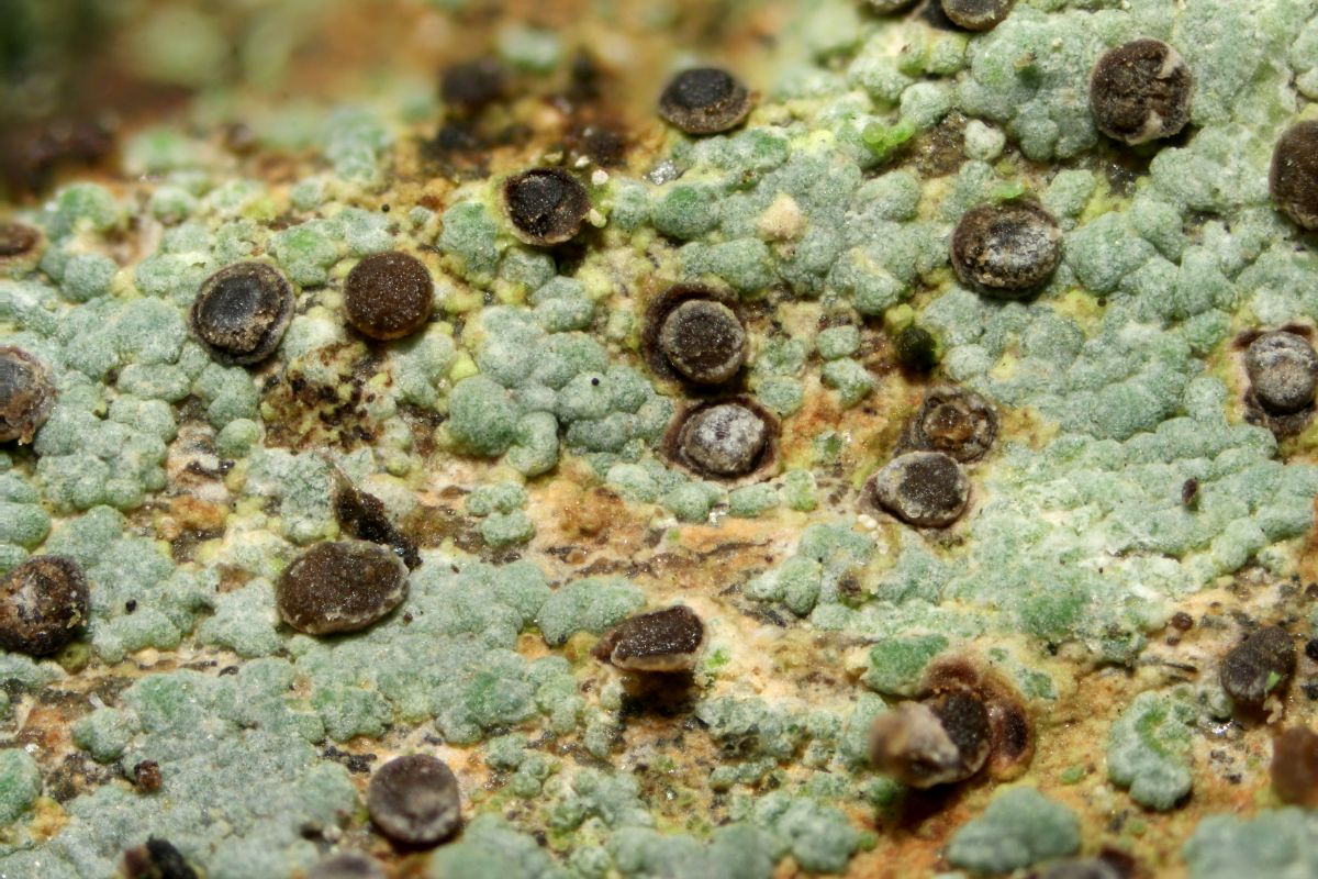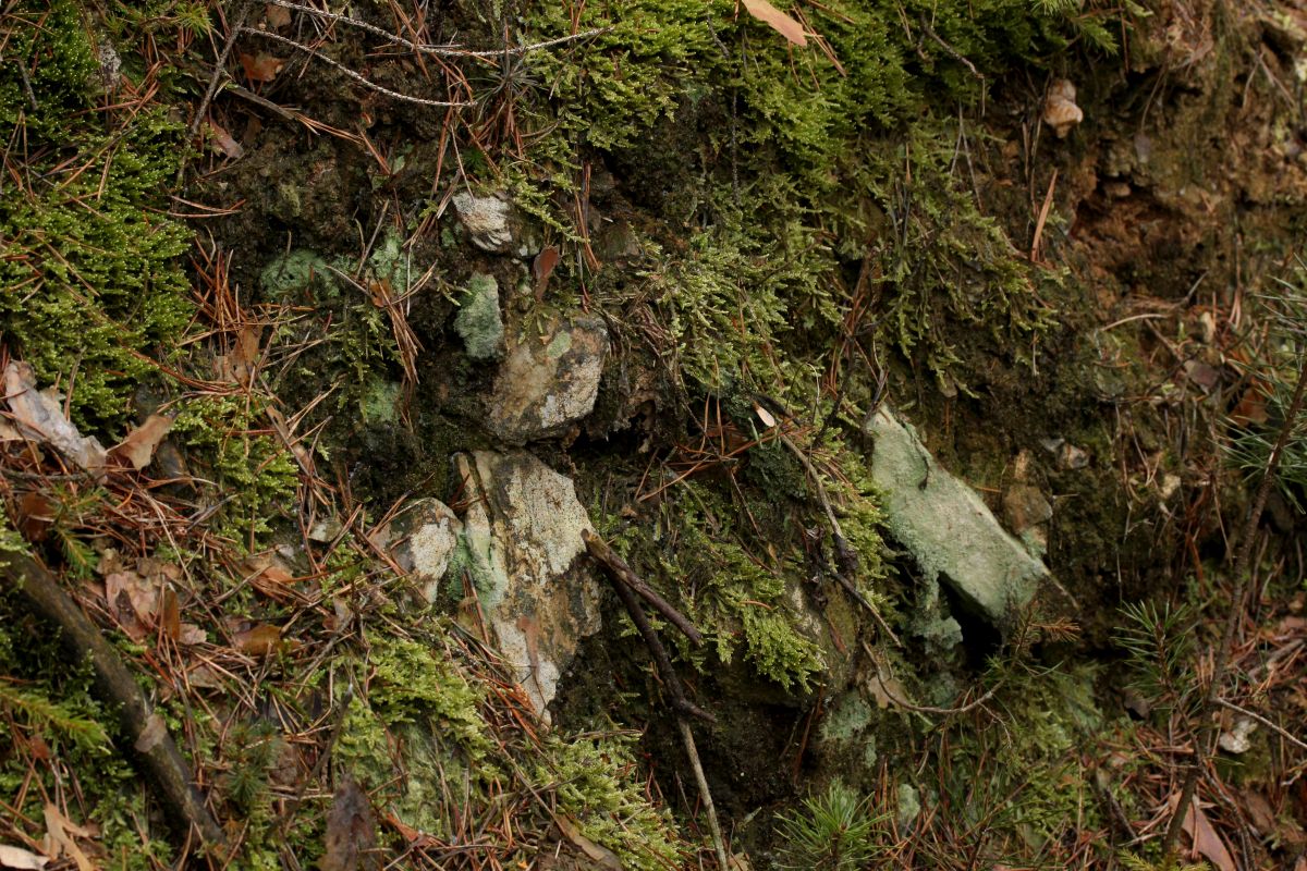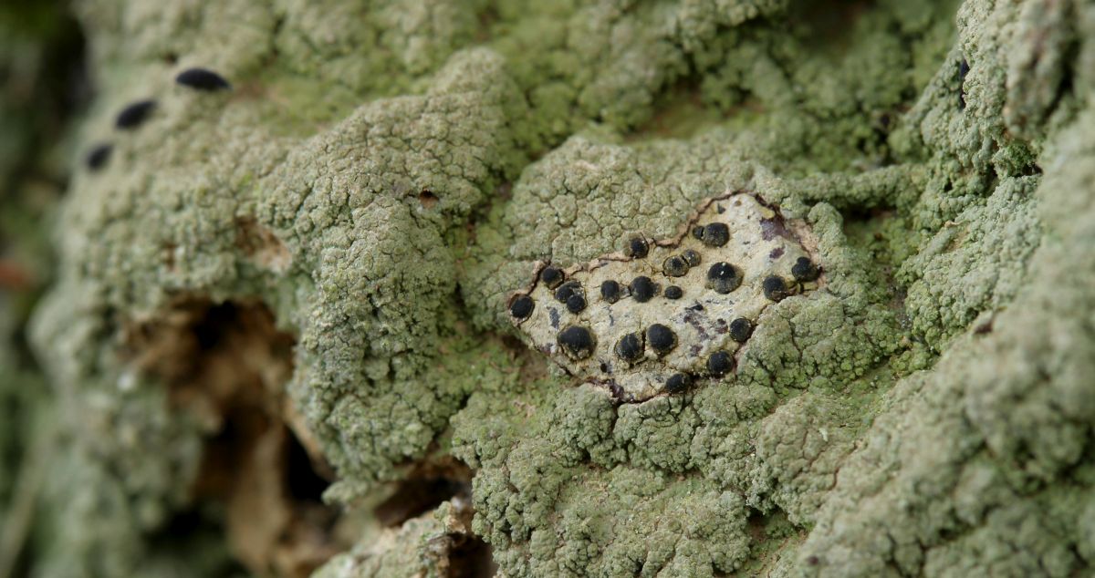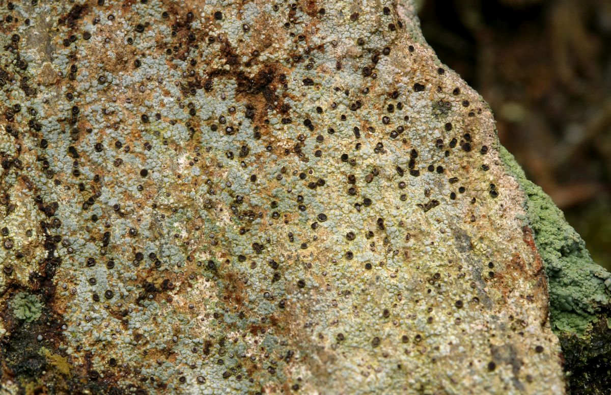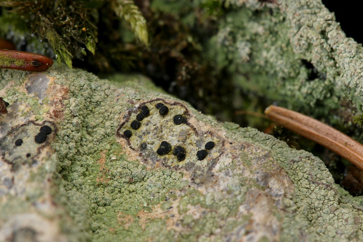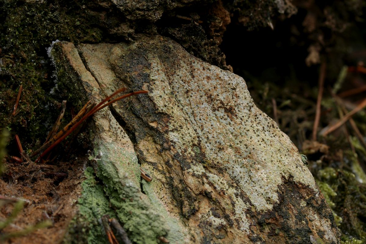 Den Anfang machte Porpidia crustulata, die mich schon am Waldrand an kleinen Steinchen an der Wegböschung begrüßte: