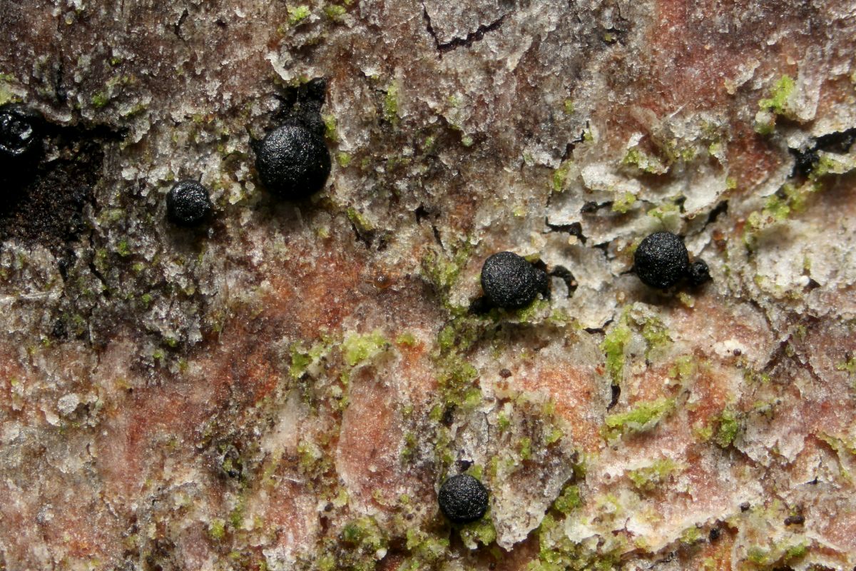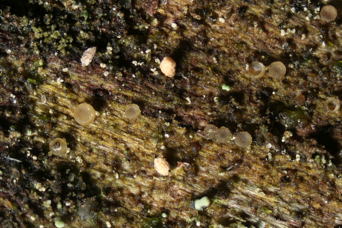 Zum Abschluss noch ein "richtiger" Pilz an Fichtenrinde. Wollte da am Harz suchen, wurde aber an den Rindenschuppen selbst fündig. Auch die Art ist nicht reif, daher noch nicht bestimmbar. Entweder eine Durella oder Patellaria, wahrscheinlich letzteres, aber mal abwarten, ob der in Kultur noch reif wird. Würde mich in dem Fall wieder melden, was rauskam.