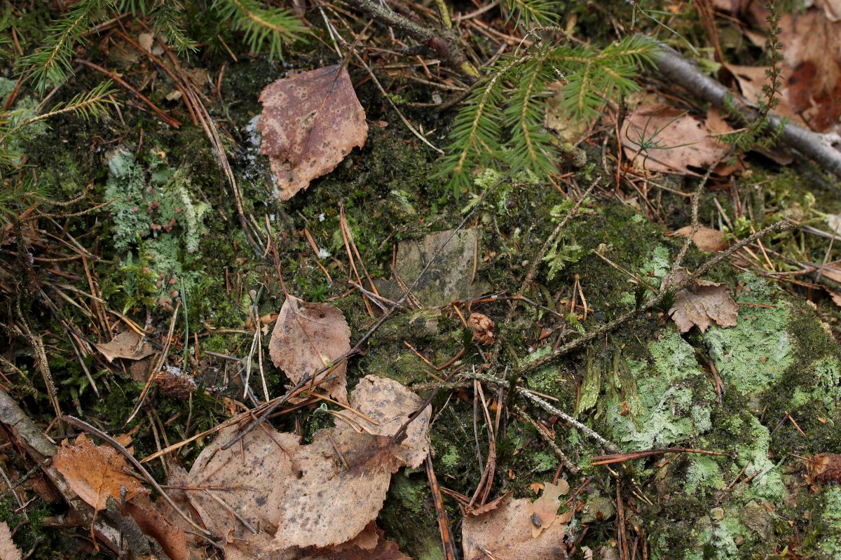 Das Gebiet ist ein Kiefern-Fichten-Wald mit einzelnen Lärchen und Birken drin. Der Boden war noch fest gefroren, schließlich waren Nachttemperaturen unter -5 Grad keine Seltenheit und als ich unterwegs war hatte es gerade mal 2 Grad plus. Entsprechend waren die allermeisten Funde nicht wirklich reif.