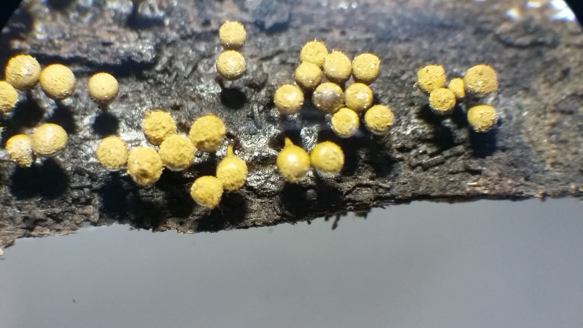 diesmal kann ich Dir nur zustimmen - Trichia decipiens var. decipiens. Ist gut charakterisiert durch die lang zugespitzten Capillitiumfäden (Elateren), Auch die Sporen mit netzförmiger Skulptur sind charakteristisch.