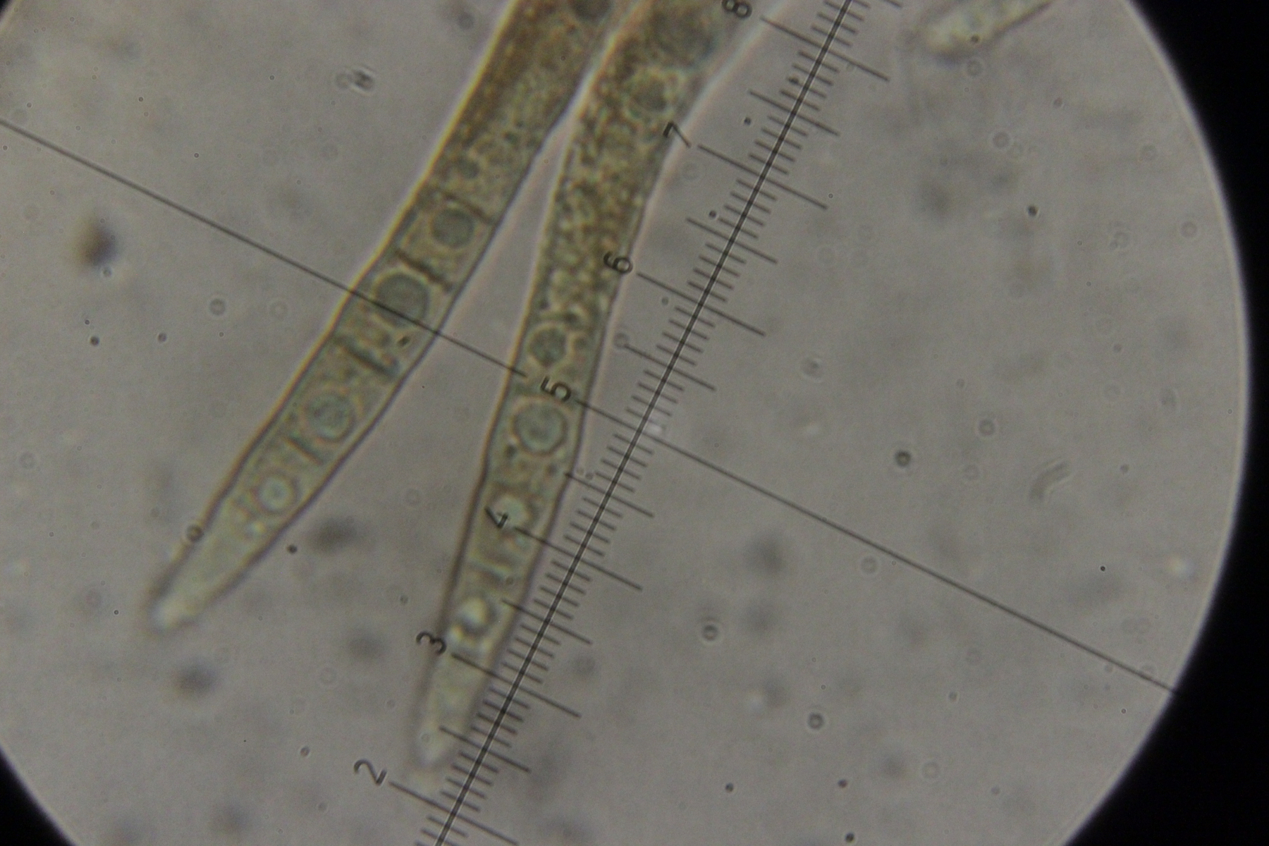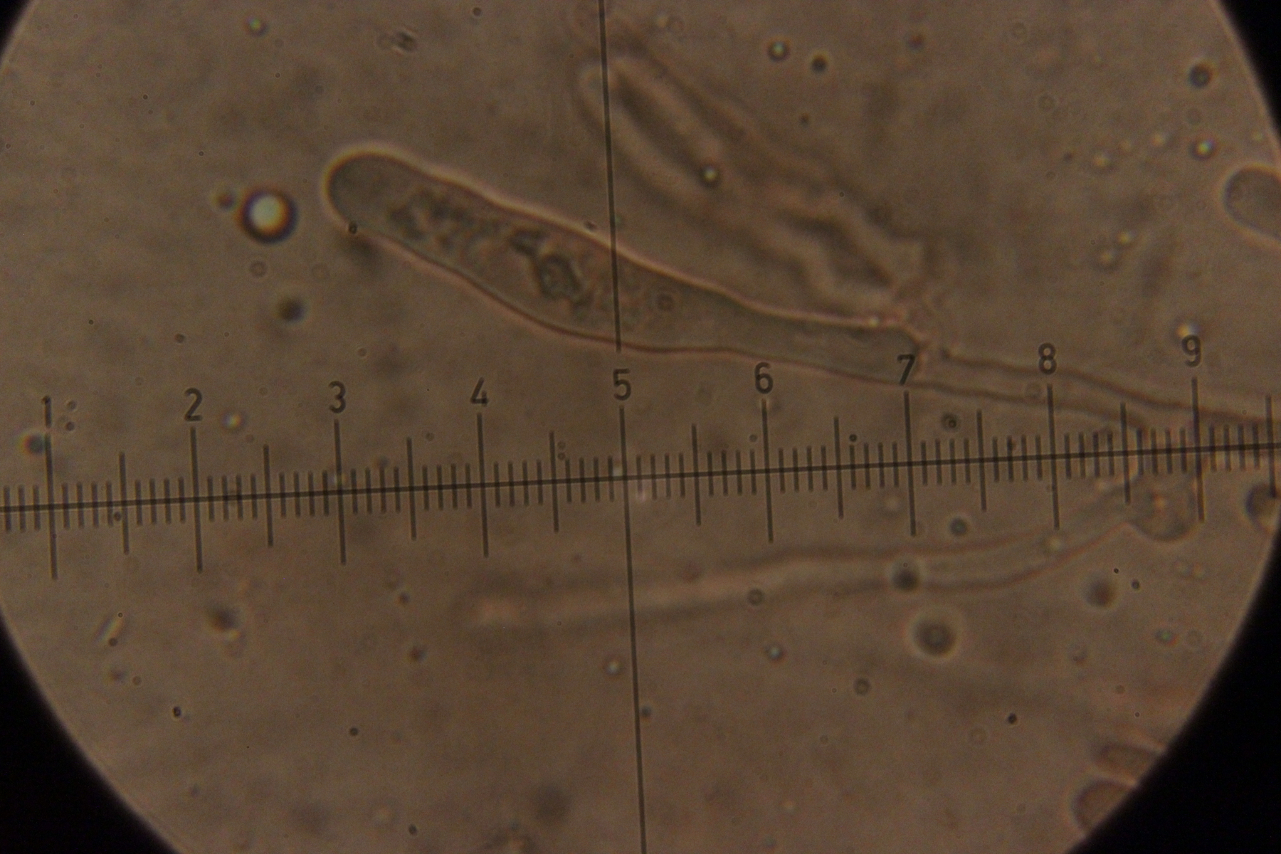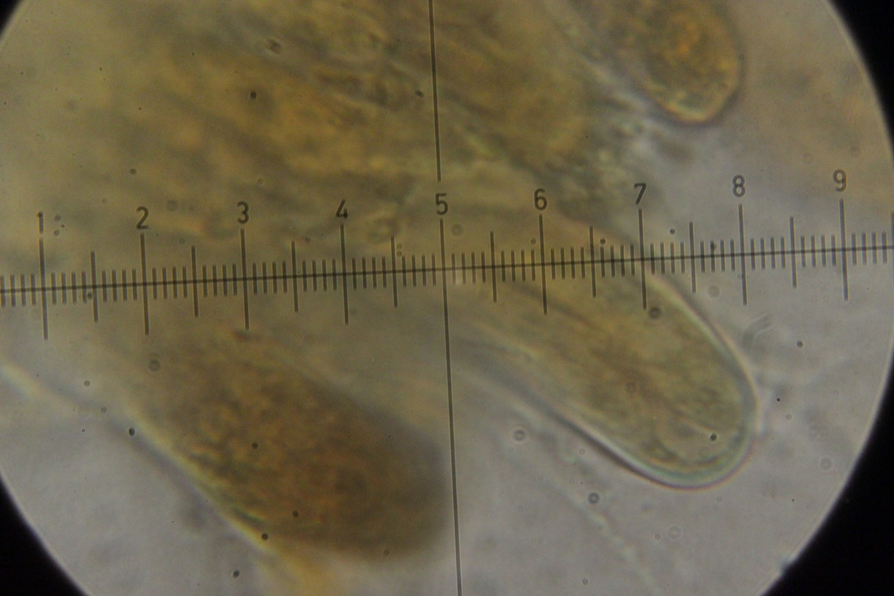 Noch mehr Zystiden. Auffällig, daß der untere Teil oft verdickt war, gefolgt von einer oberen, dünneren Spitze